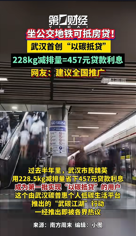 这是武汉推出的“以碳抵贷”创新政策宣传内容,核心是将低碳出行的碳减排量兑换为房贷利息减免,具体信息与解读如下:走路和自行车不行吗?