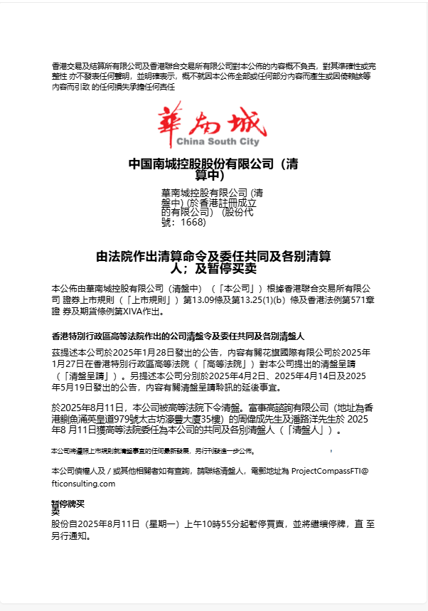 2025/08/13 华南城成为继中国恒大之后,第二家被香港法院强制清盘的大型内地房企.国资“白武士”折戟。