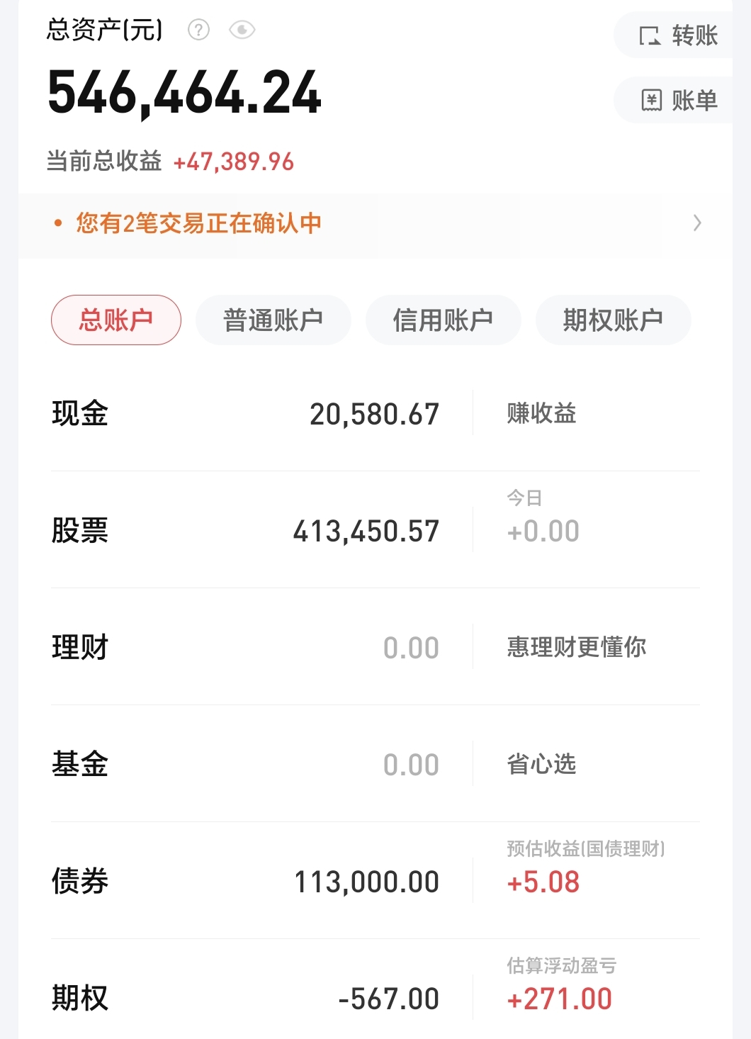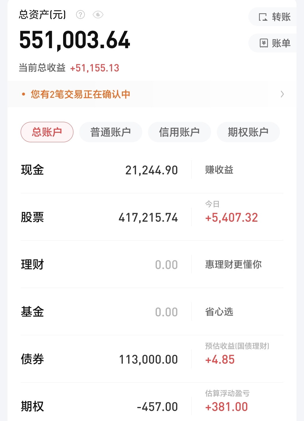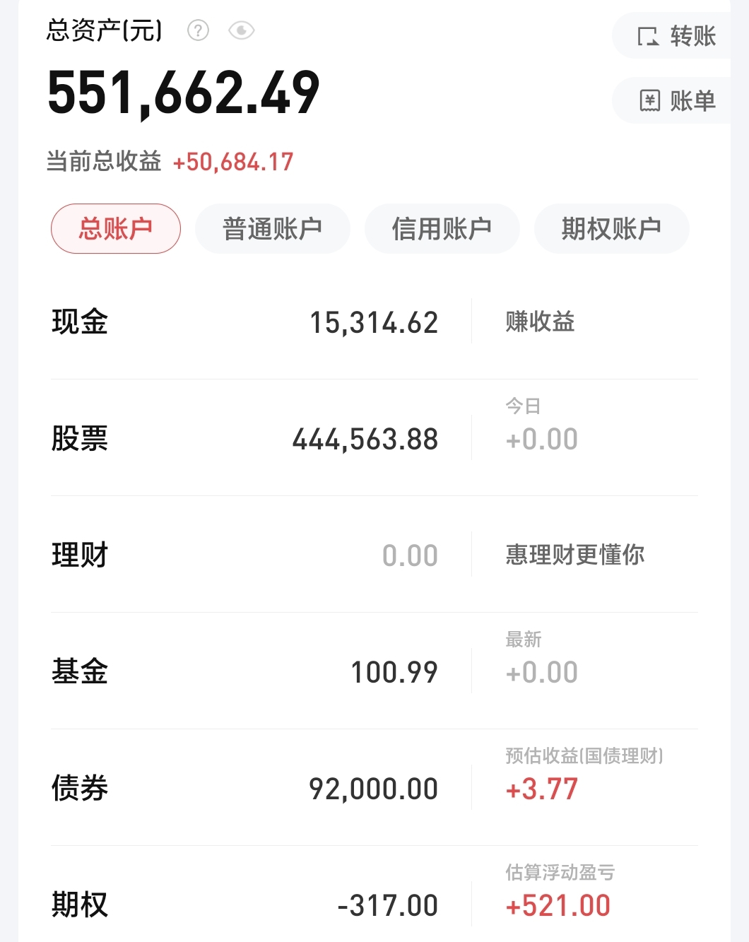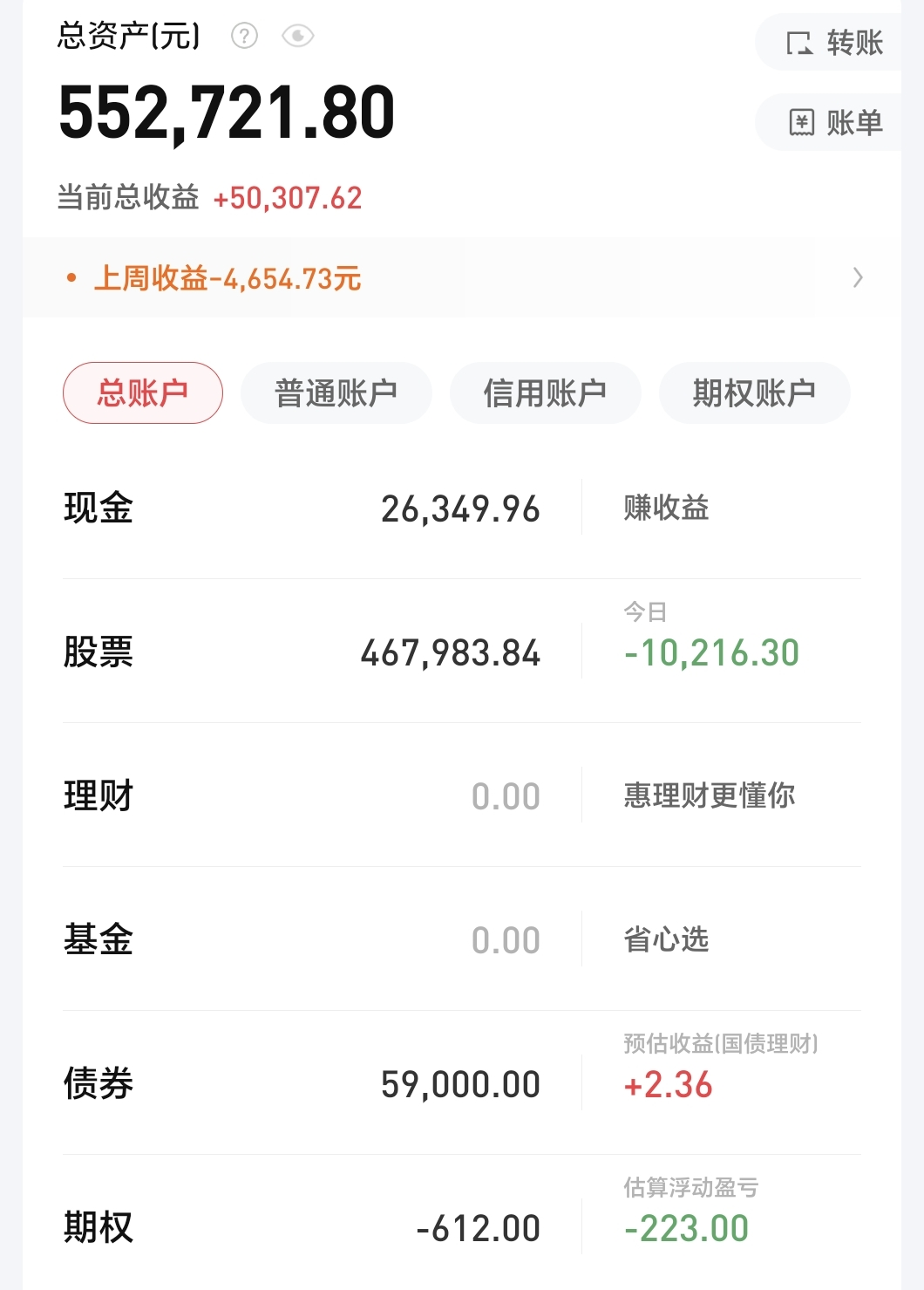 转债从两融账户挪回,图里持仓为个股和转债持仓,不含期权账户。