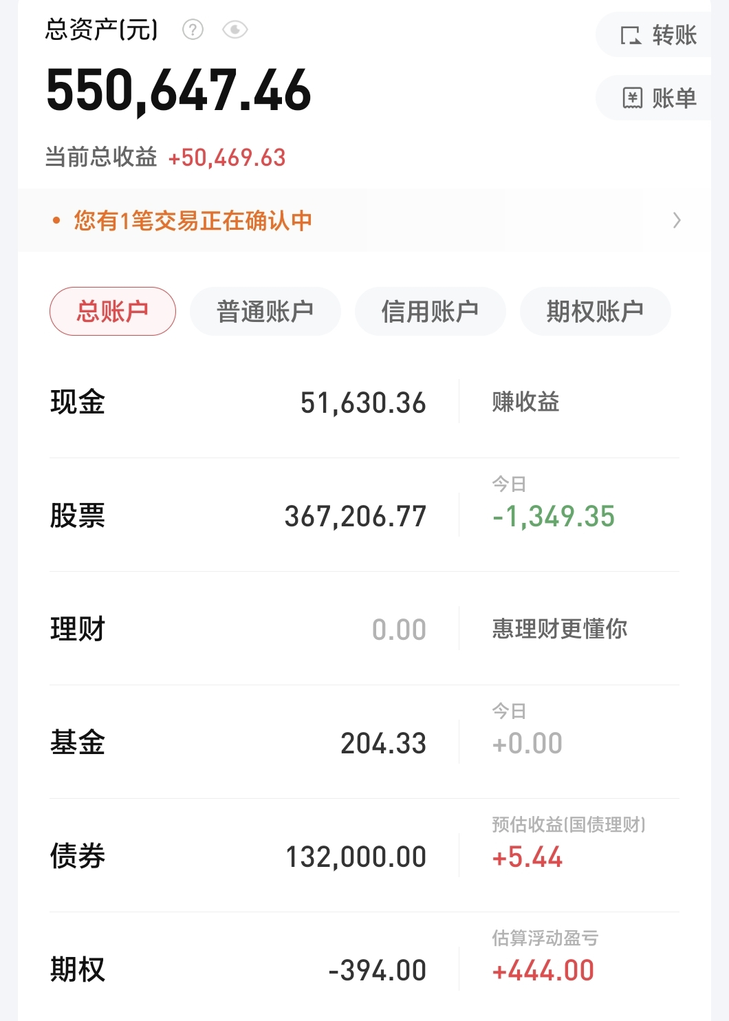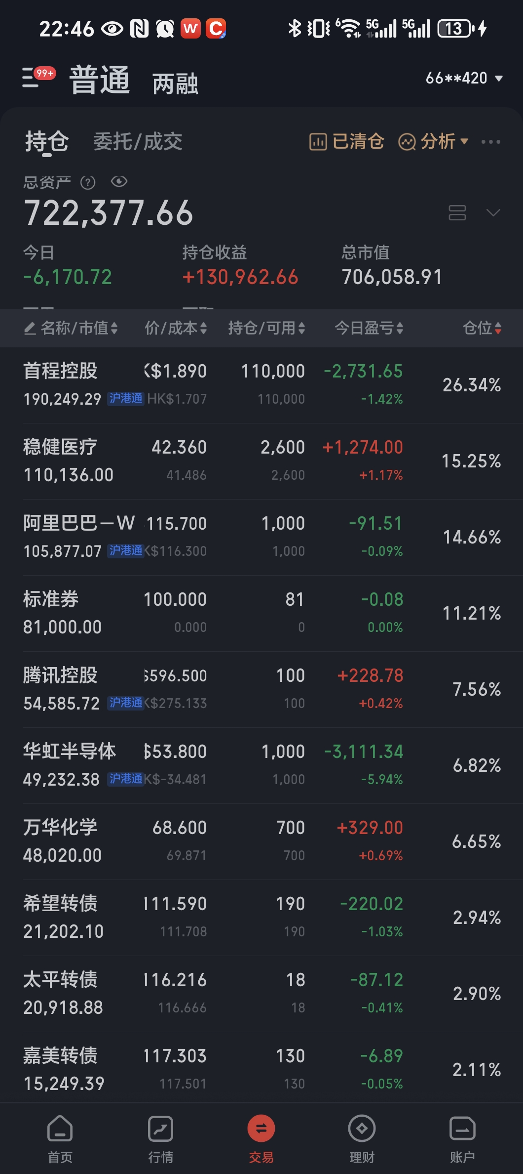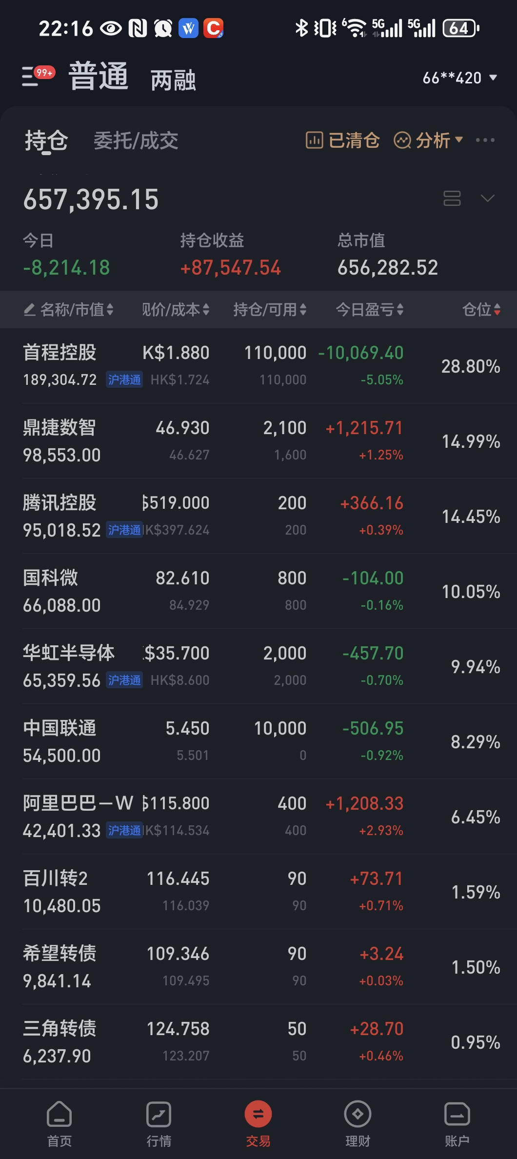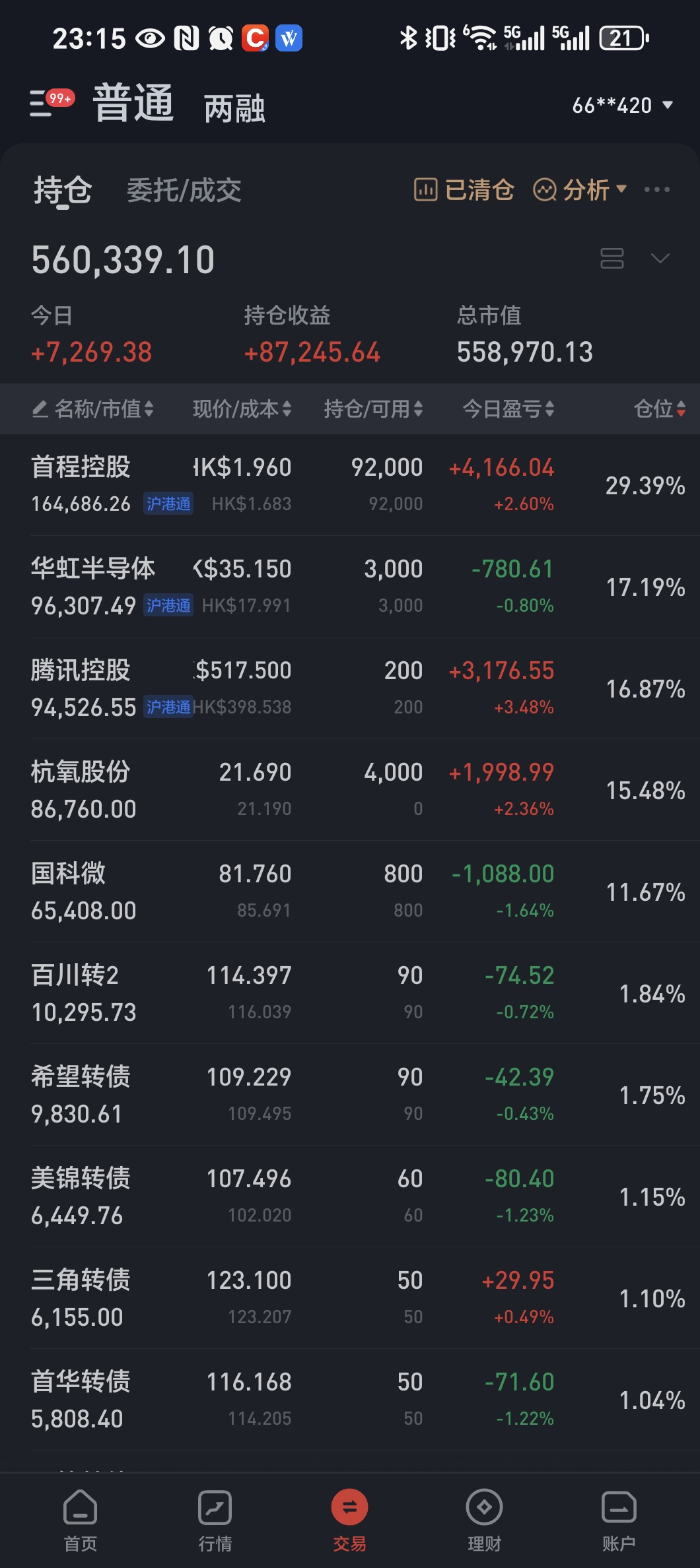 转债从两融账户挪回,图里持仓为个股和转债持仓,不含期权账户。