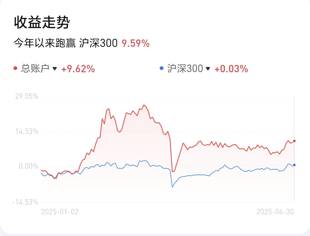 首程算是本轮仓位最重盈利却平平的票,已经有所反思,中报业绩增速我觉得小超预期,机器人端已经从投资转为产业融入,单纯的靠股权估值未来可以按产业估值。中期股息算上年初的股息,全年近8%的分红率,后续美降息必定利好。其实公司本身质地是不错的,就是对比近期的科创稍显逊色,后续冲高考虑调低仓位配置。