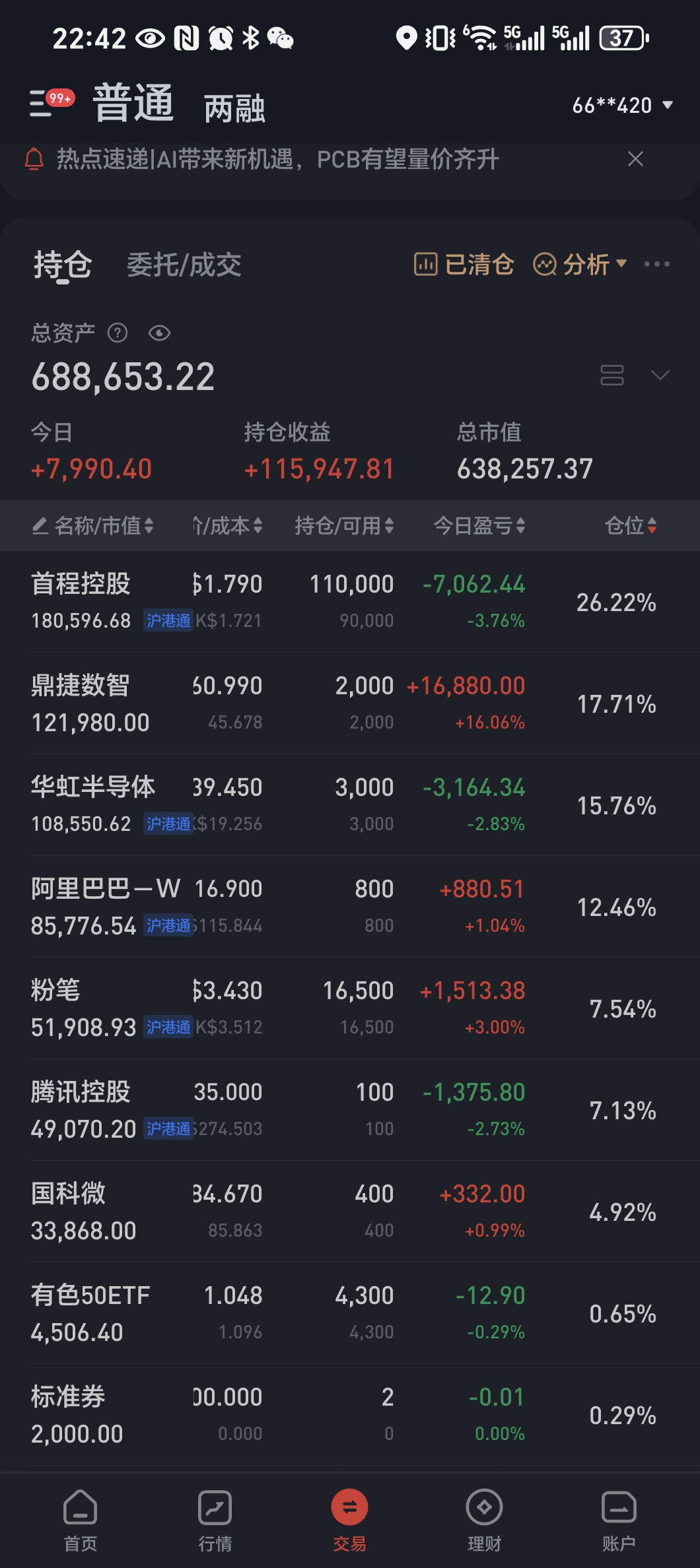 华宏:FAB就不单提了,龙一龙二都是好公司,先进制程能给更高的估值目前问题无非就是产能的问题,成熟制程有产业逻辑+资产注入。都是考虑未来继续加仓的票。