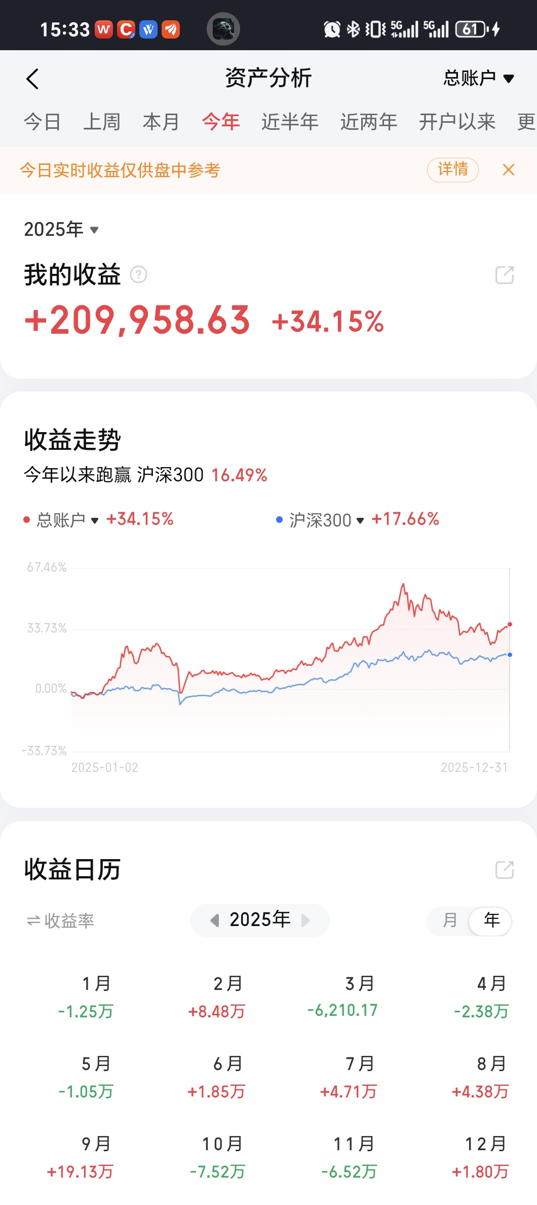 今日账户: 0.63%,YTD:-2.63%。昨日修正为-0.31%。