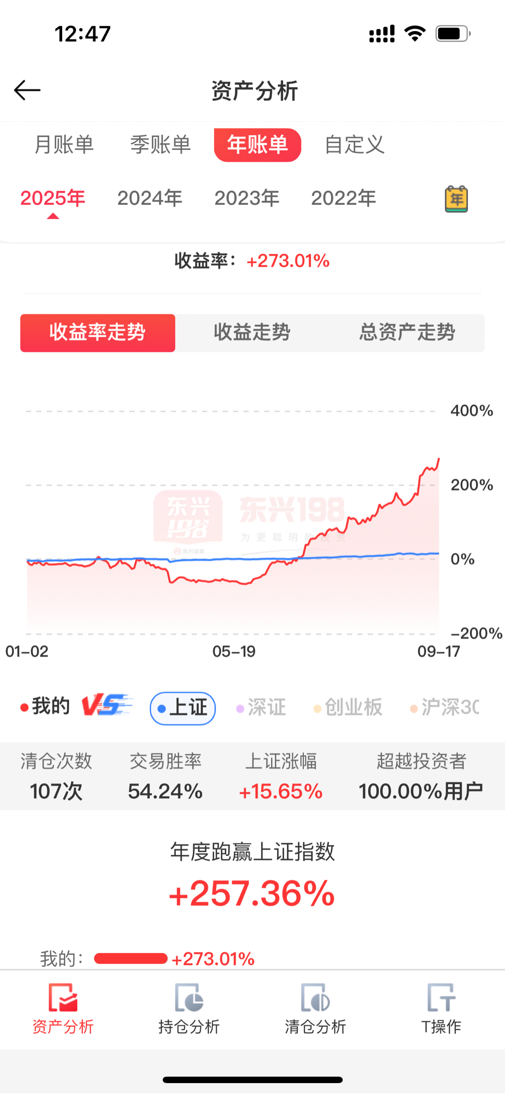 今年其实走出了挺多冷门大牛股的,包括若羽臣、菲林格尔等。A股不缺机会,保持努力,积累经验,应该会有个好的收成。今年已经陆续从股市里取了很多钱出来。账户上都是利润,没有本金了。年底计划再取一笔资金作为明年的生活开销,争取以一个更好的状态迎接2026年的挑战。