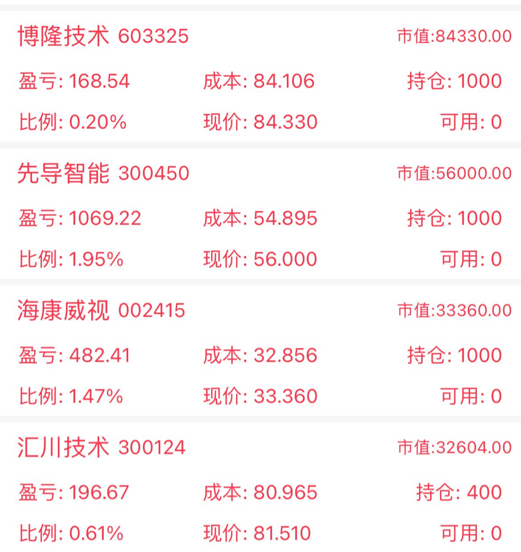 下午开盘清仓了弘景光电,赌对了业绩,也赌对了高开,可惜涨幅不及预期,预期是100。
