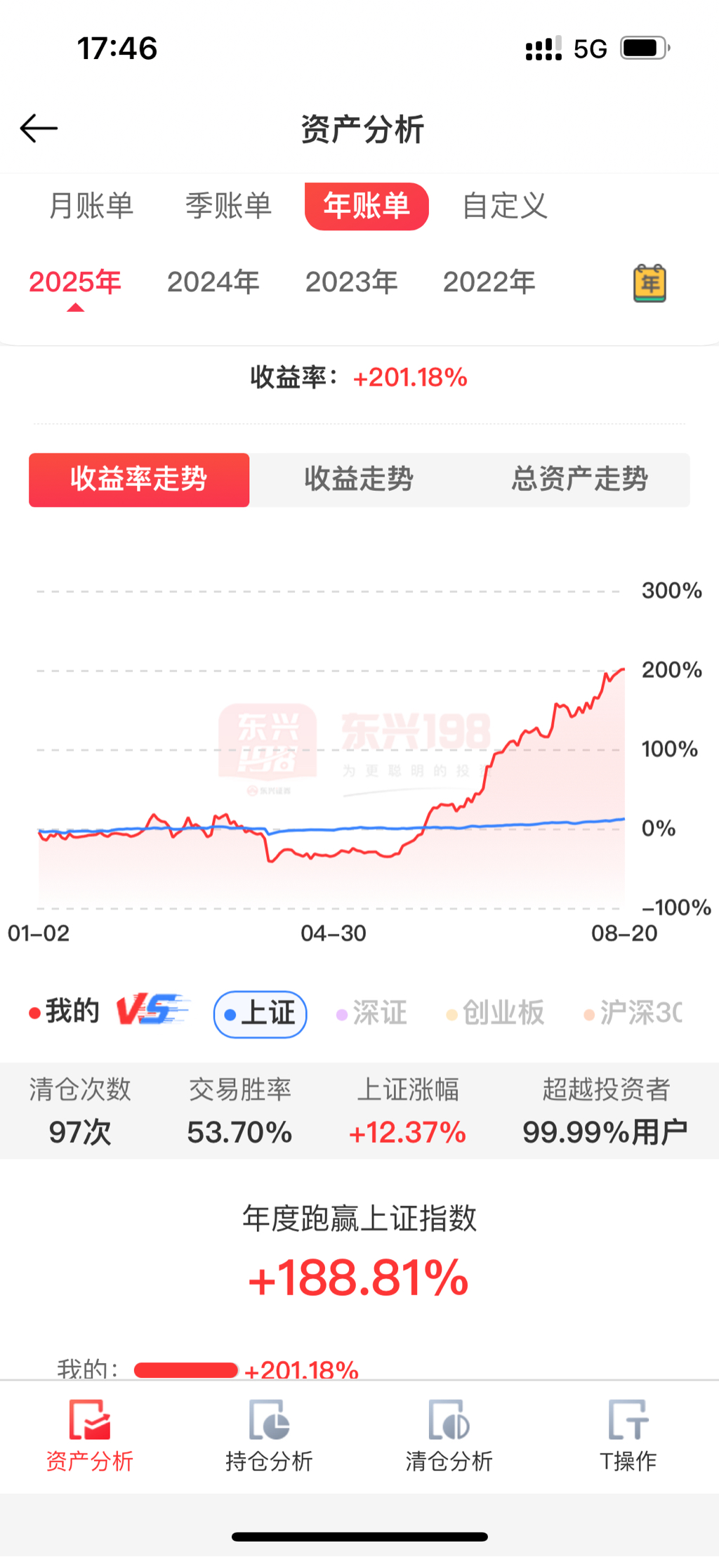 截至昨天的年度收益率。今天又赚了一些些,算上今天,应该是超过205%了。