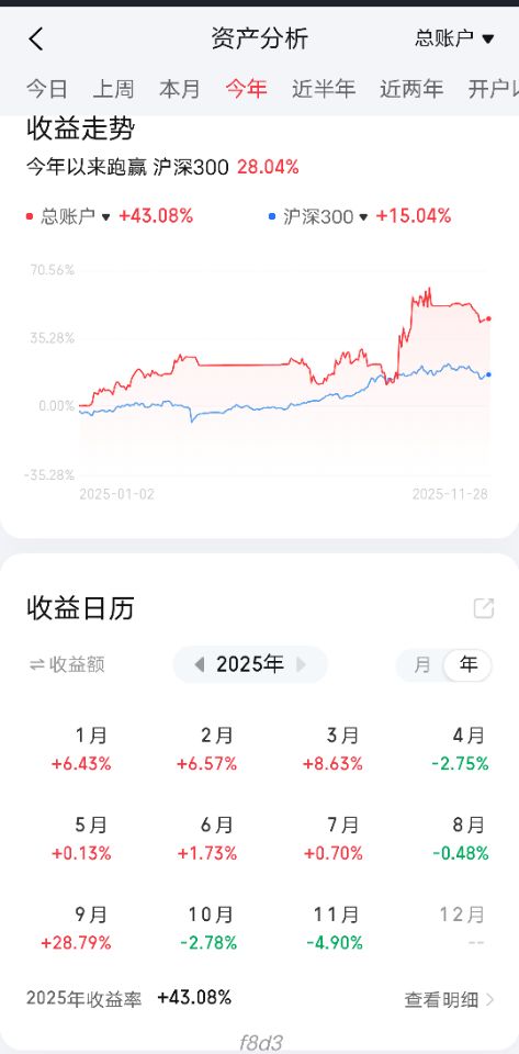 个人账户方面,录得-2.78%的月线亏损,鉴于上个月取得28% 的超额收益,这个亏损比例可以坦然接受了。