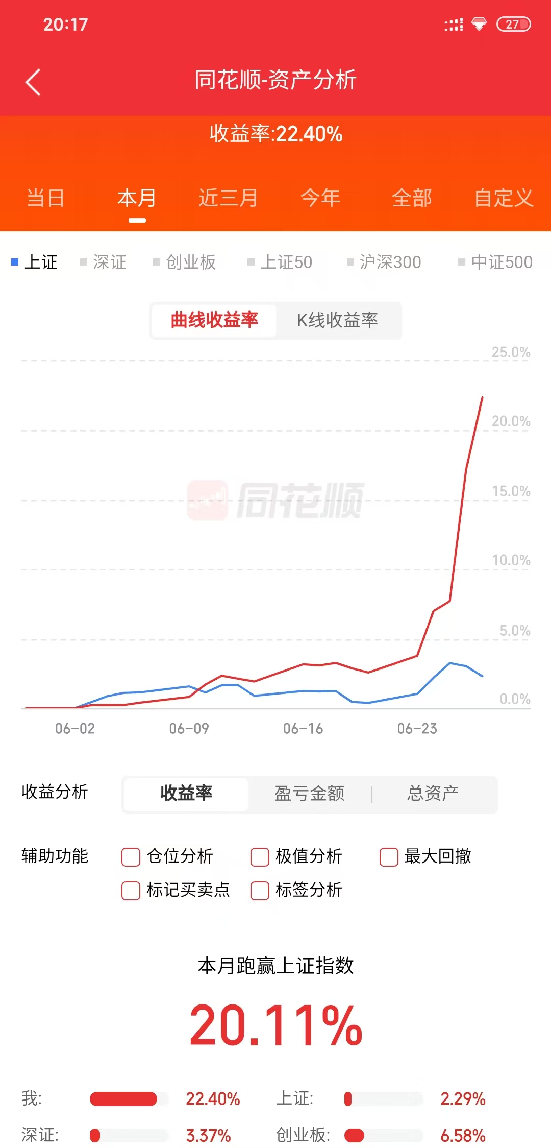 这次主要盈利是运气的加成,在最开始上涨的时候没有理性的做出全盘计划并执行,老是幻想翻倍5倍之类的,而且一直受到别人的言论影响情绪,影响自己的操作。东杰发布公告后,什么都没变,变的是自己的心态。