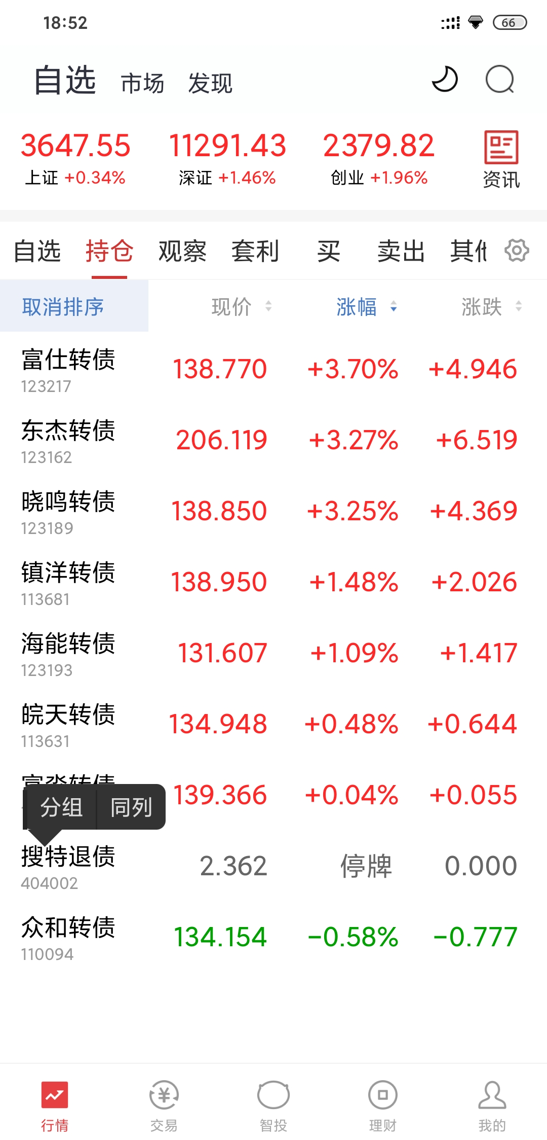 回来的出租车上看到奇正转债负溢价正股跌停,忍不住做了个短线,赚了个出租车费沾沾自喜,回到家一看MMP卖早了。