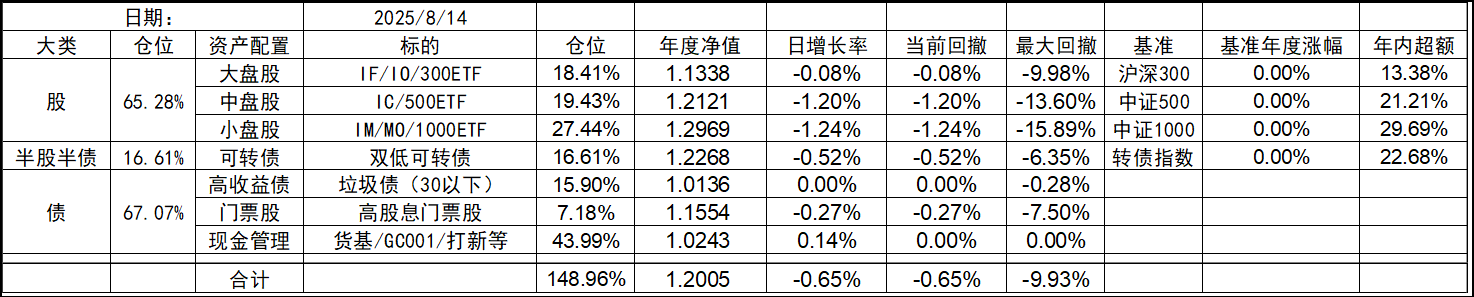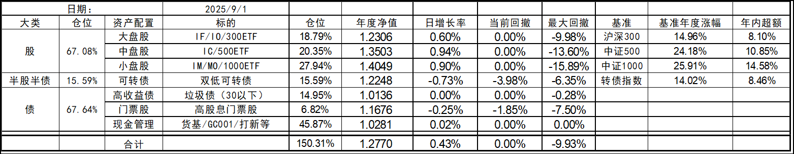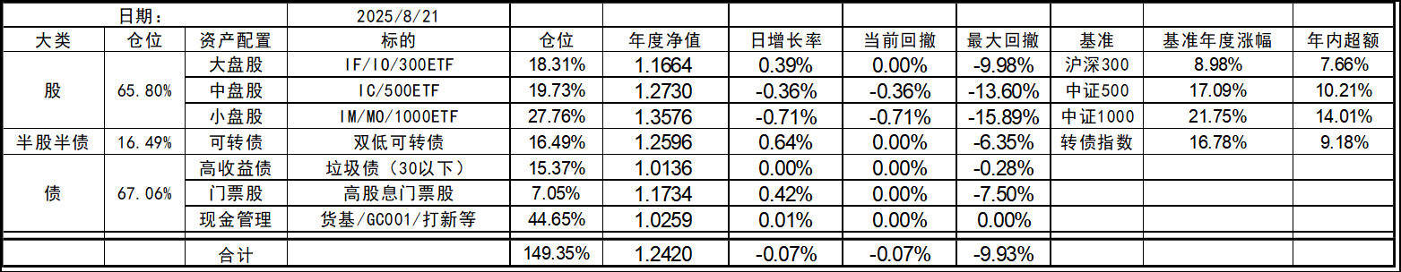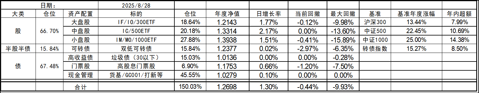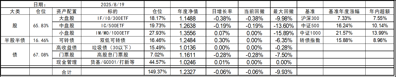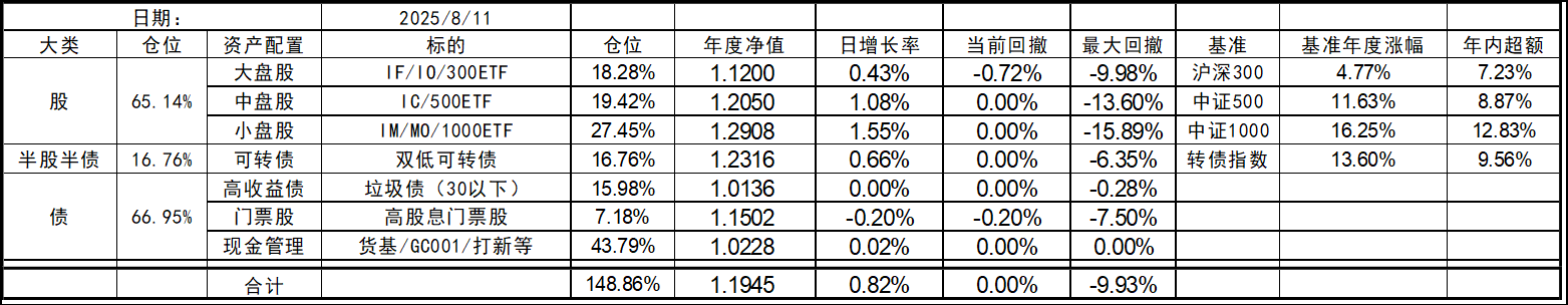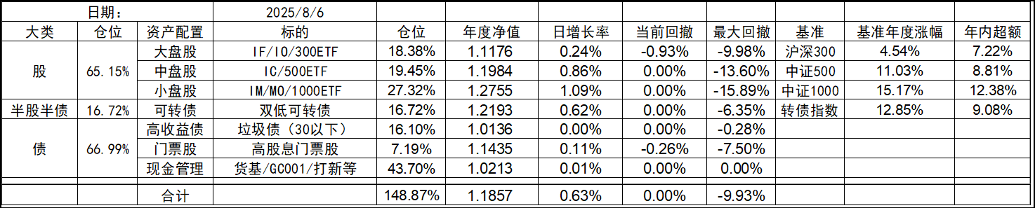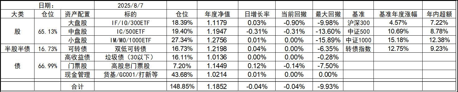 8月开局还行,大盘股延续颓势有点惨,中小盘依旧坚挺。收盘总仓位微幅下跌。