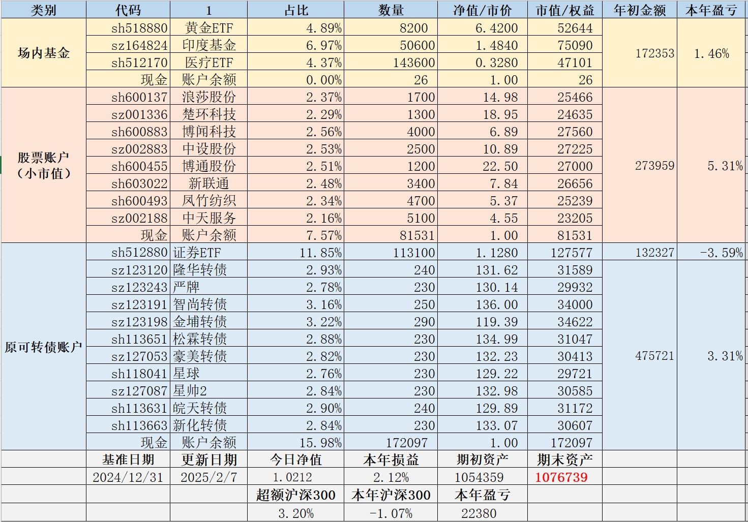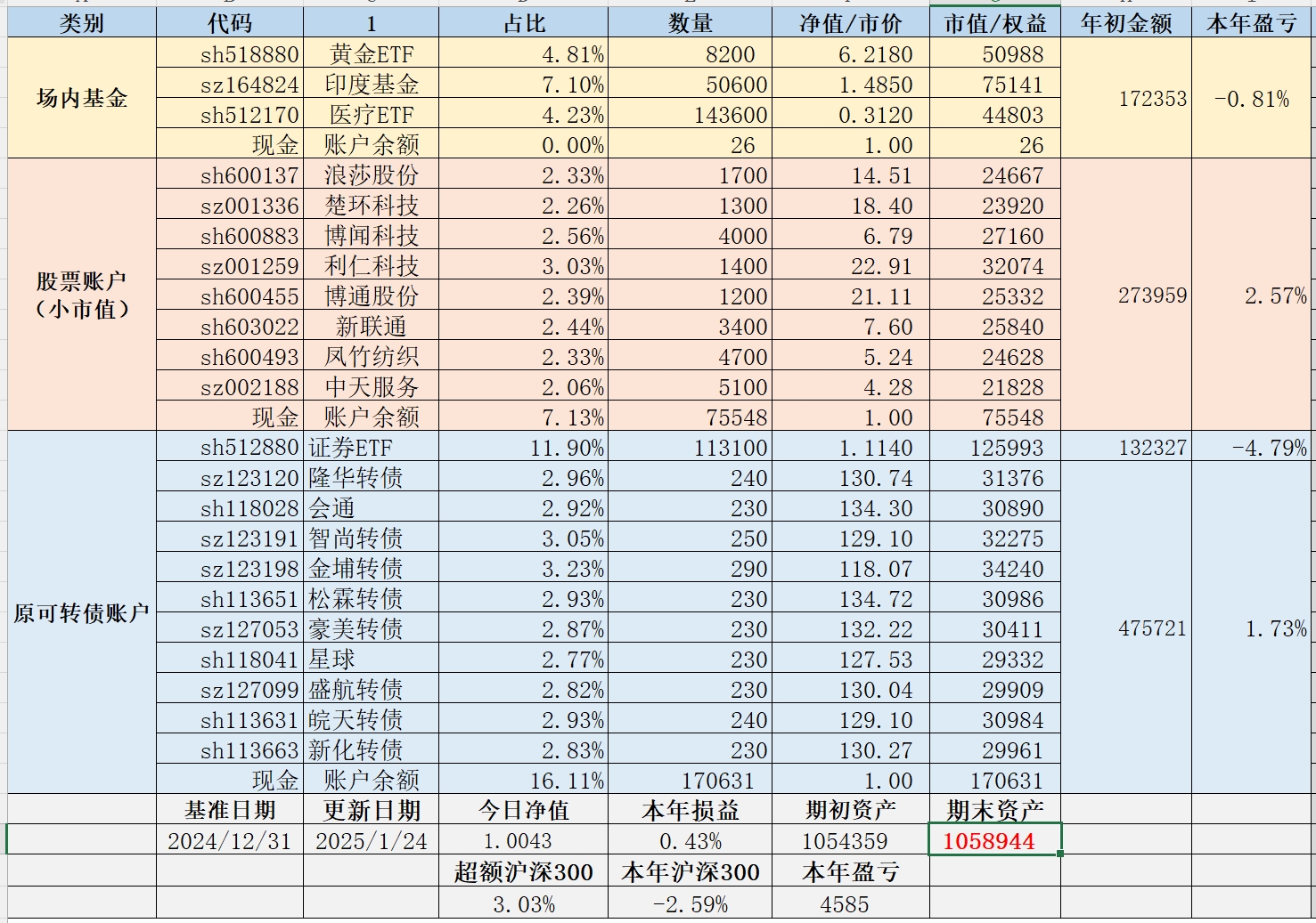 持仓的小市值和可转债今天都涨了,原本今天可以正收益的。但是中午收盘前,看到指数回踩了20日均线,买了一张IM2603多单,想着捞个反弹,结果下午收盘亏一万多。暂时不动,再拿着看看。
