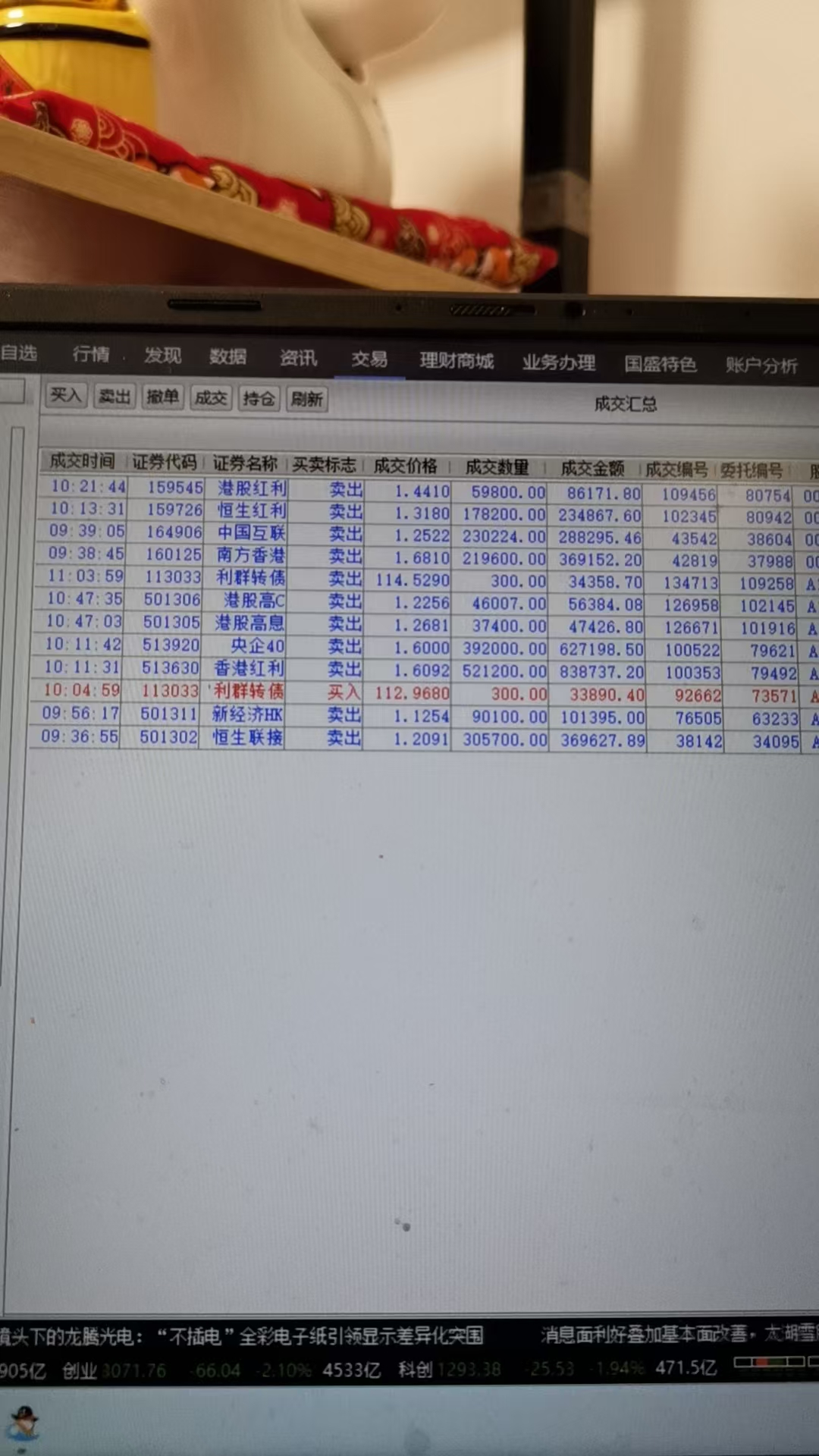 今天亏损0.22%,基金净值1.278,权益类基金仓位为百分之十七。今天港股全天震荡收跌,港股基金进入调整,特别是重仓的港股红利基金损失惨重,科创板基金微亏出局错过了后面大涨机会。目前主要持有折价创业板封闭基金作为底仓,港股基金除了卖不出去的红利基金,剩下最后一个南方香港。本周顶格申购北交所新股,权益类基金还是要在严格控制总体仓位基础上,尽量减少操作频率,确保有效控制今年收益回撤。