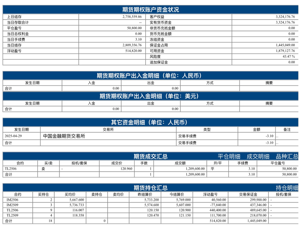 选IM,是因为其有利息(股息,不多,好像1%多一点。)、波动(很大)、帖水(5%左右)、未来(按基数的编制方案和通胀的预期,长远看,指数是上升的)。