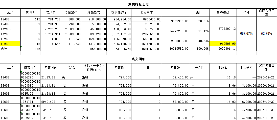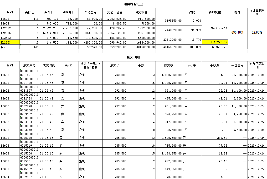 今年操作的三个品种,IM和I是赚钱的,TL是赔钱的。回顾这一年的操作,再看看年初的帖子。计划和操作大相庭径。男人的嘴,骗人的鬼,终究还是没有成熟的赚钱策略所致。
