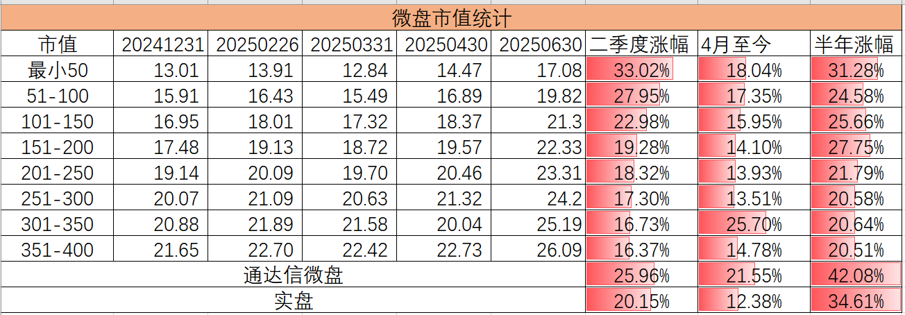 从6月底开始,小微盘的平均涨幅被中大市值追上,两者形成了剪刀差。