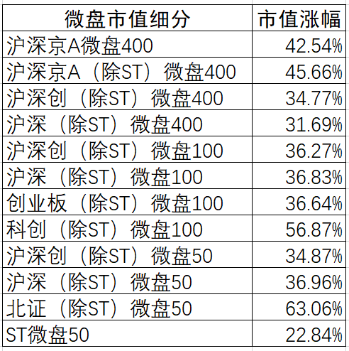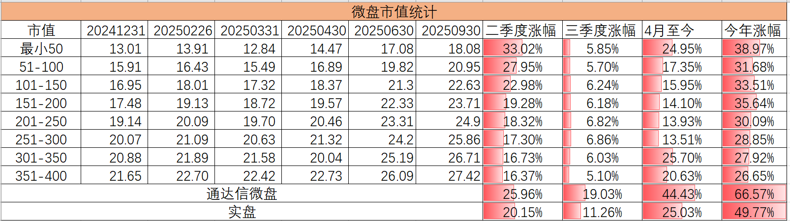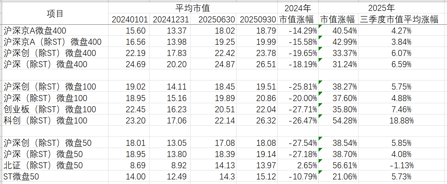 除去科创、北交所和ST,三季度微盘股市值平均涨幅仅6%左右,远远落后于二季度。