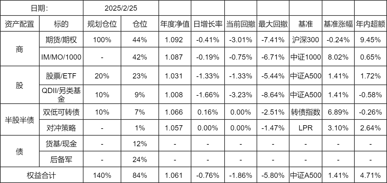 1、打造现金选项:可转债、均值回归、量化策略、期货套利等;