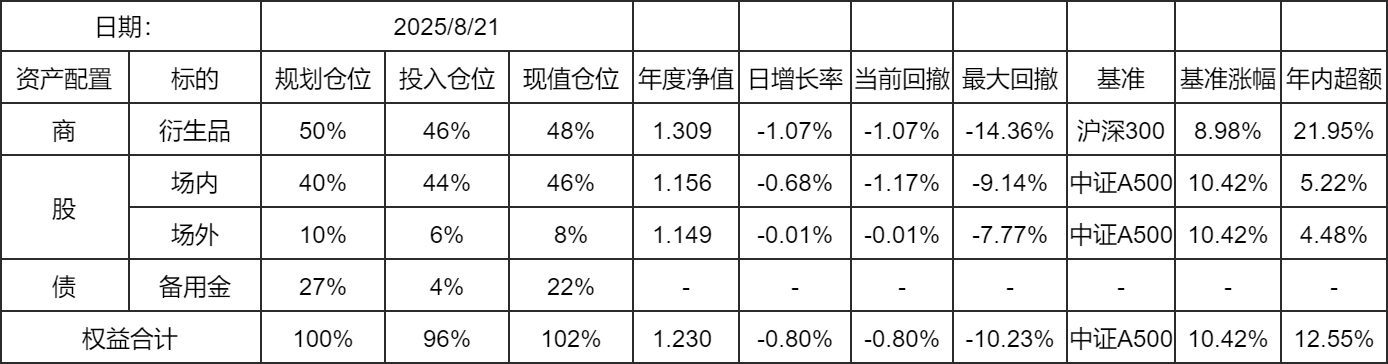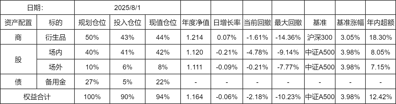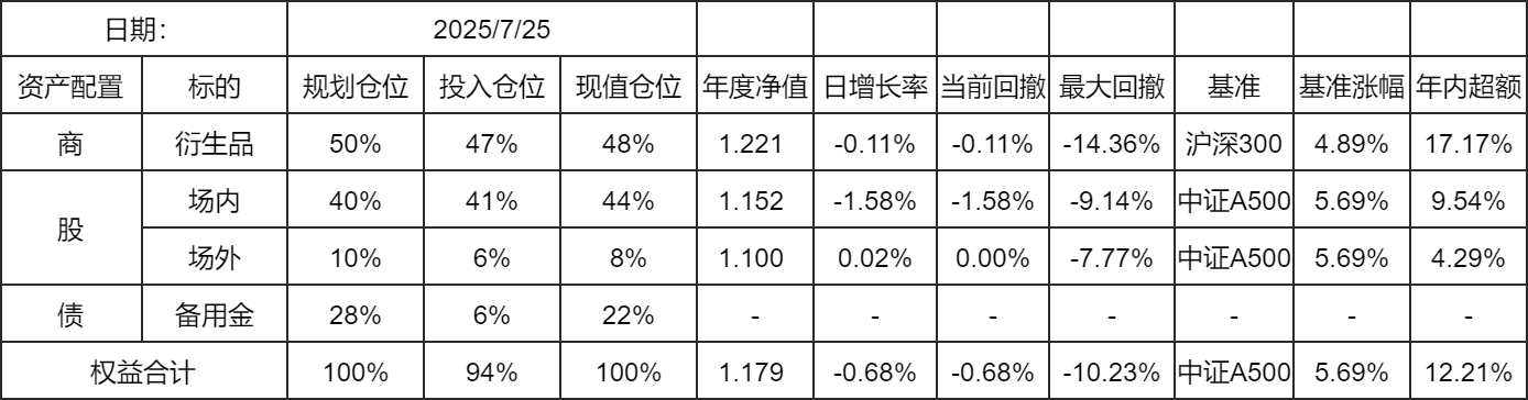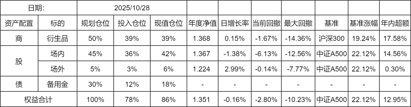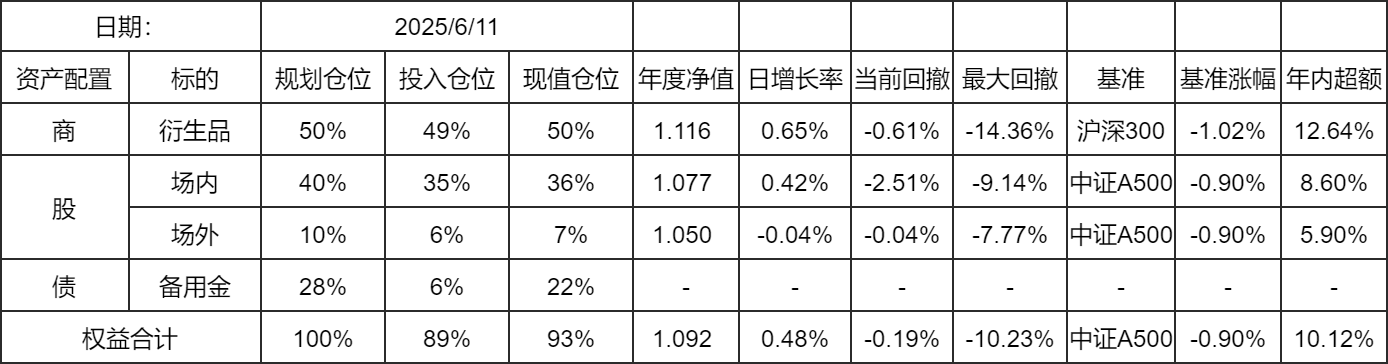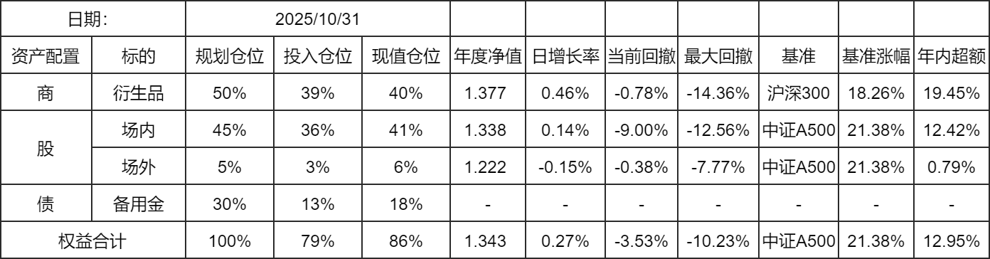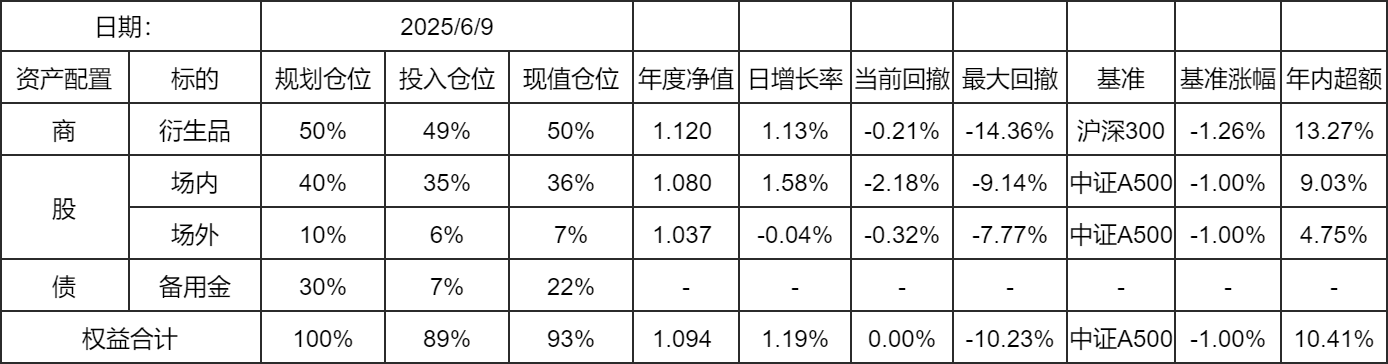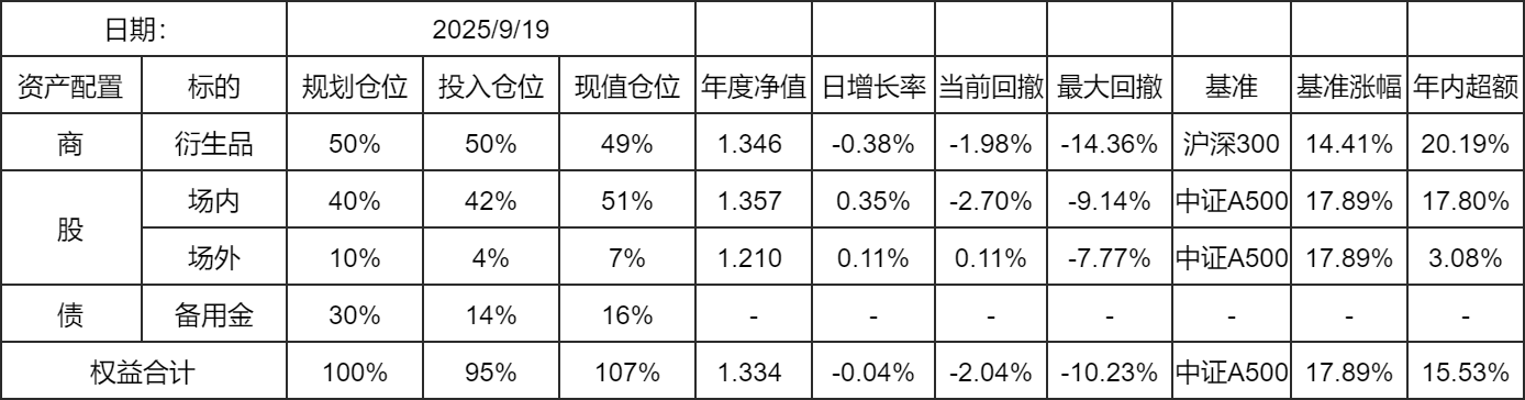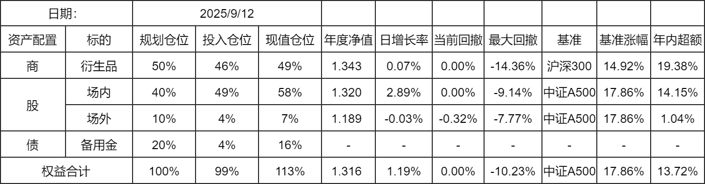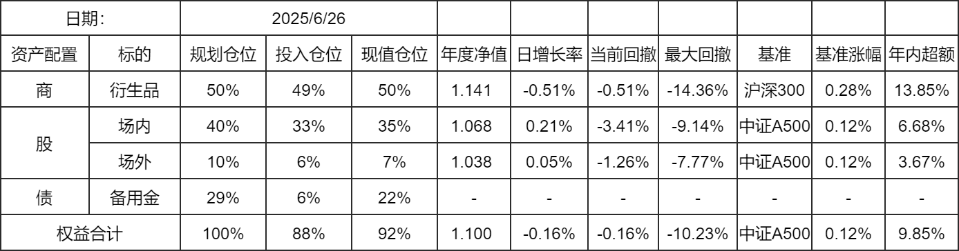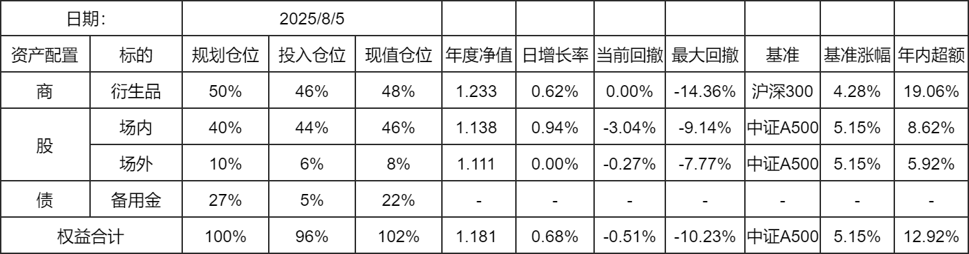 一周过去净值也创了新高,场内收益一般,衍生品还行,场内主要是香港市场,衍生品主要是大A,双轮驱动,就当做是此起彼伏吧,还不错