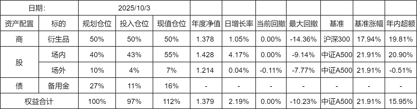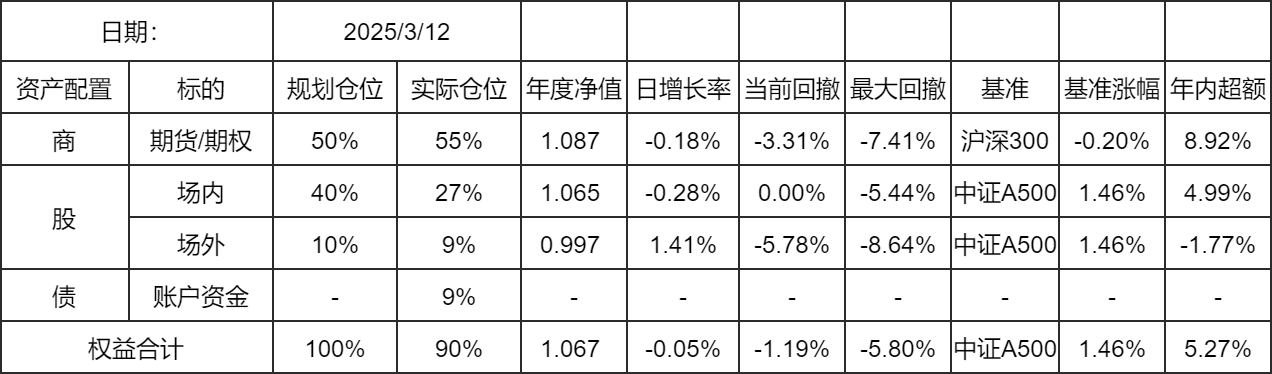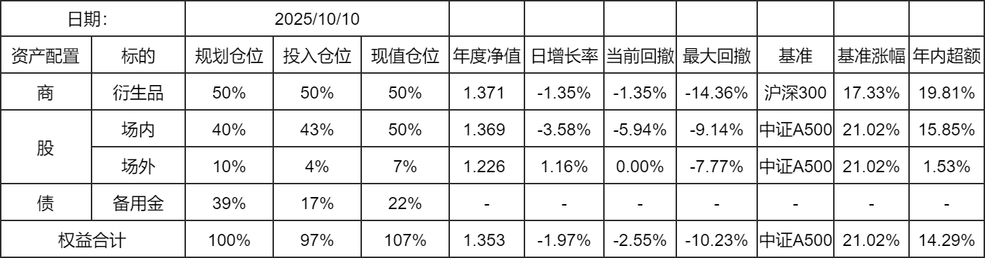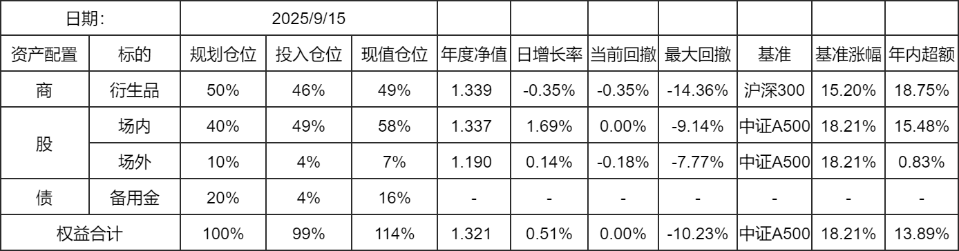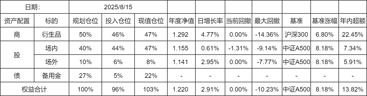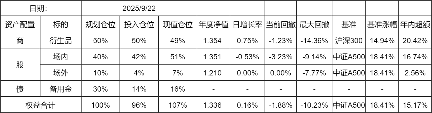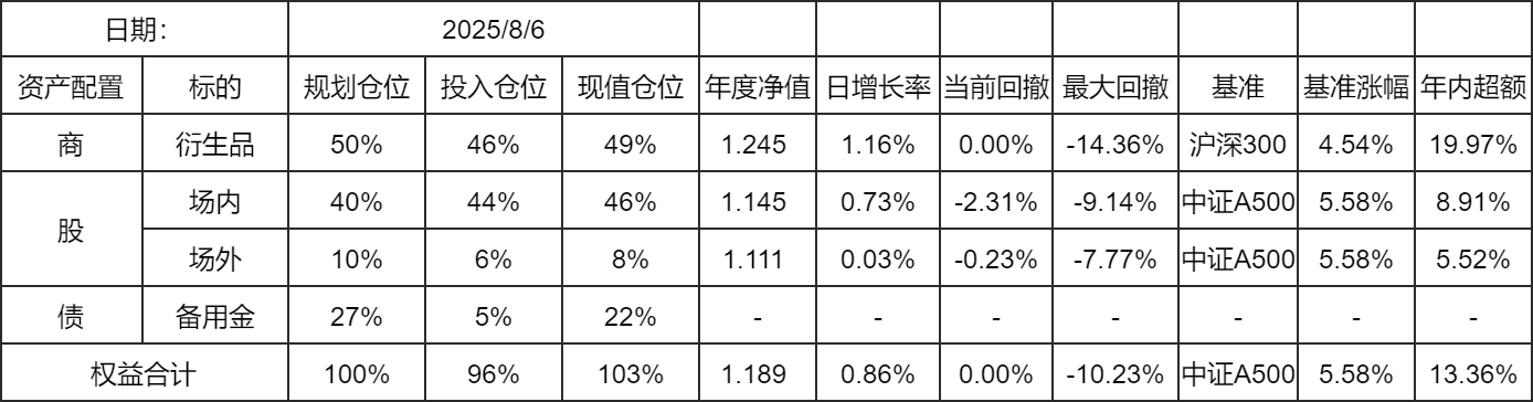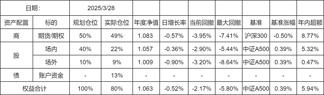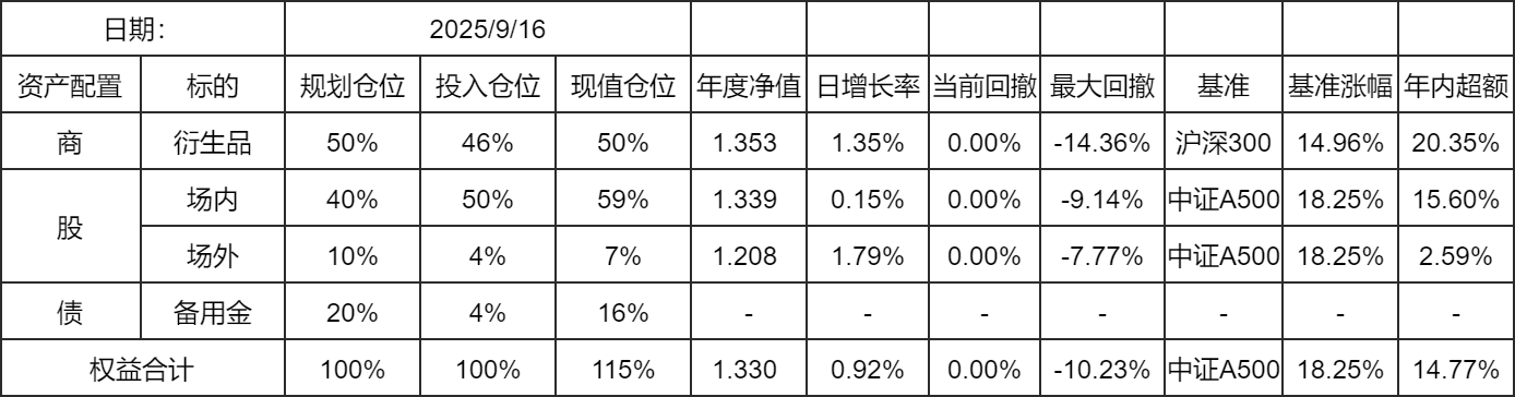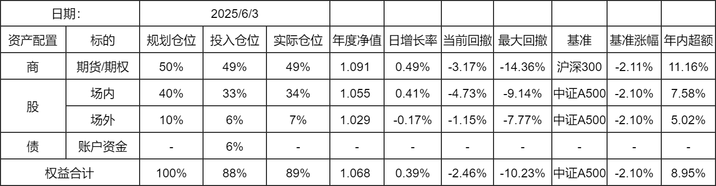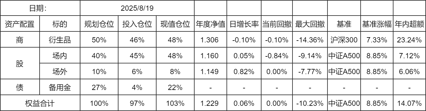 一周过去净值也创了新高,场内收益一般,衍生品还行,场内主要是香港市场,衍生品主要是大A,双轮驱动,就当做是此起彼伏吧,还不错