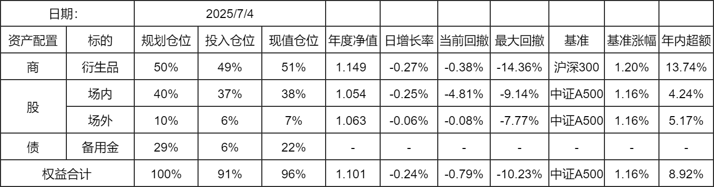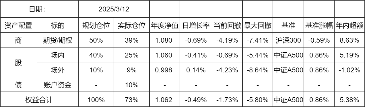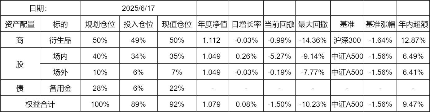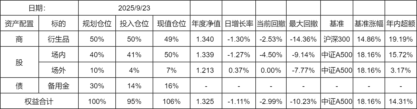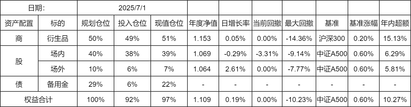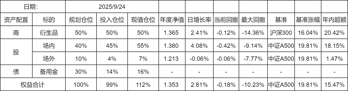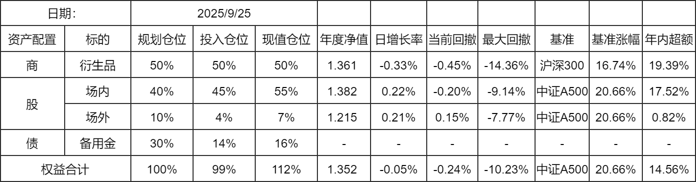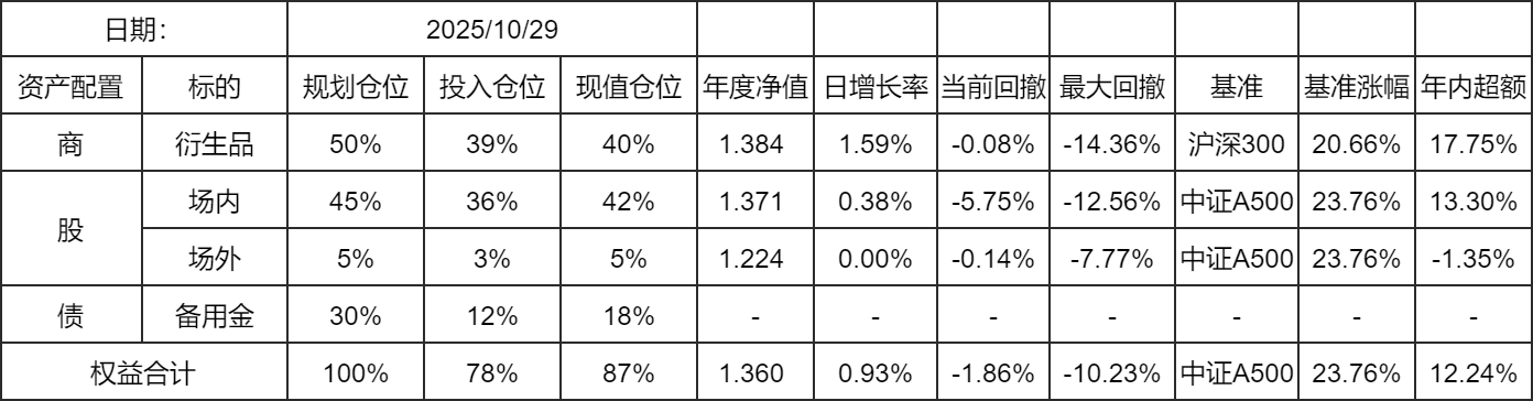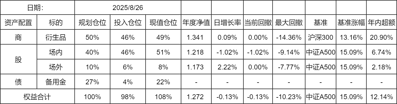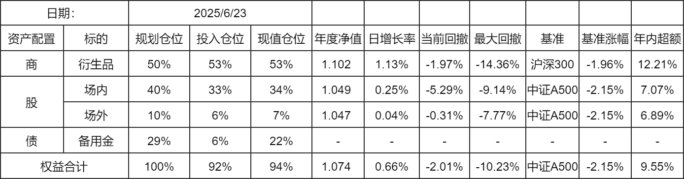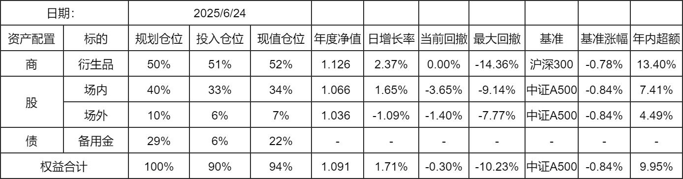 一周过去净值也创了新高,场内收益一般,衍生品还行,场内主要是香港市场,衍生品主要是大A,双轮驱动,就当做是此起彼伏吧,还不错