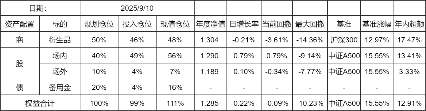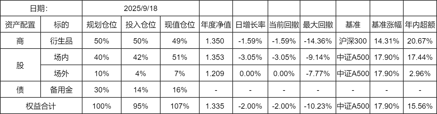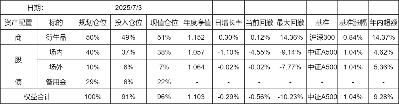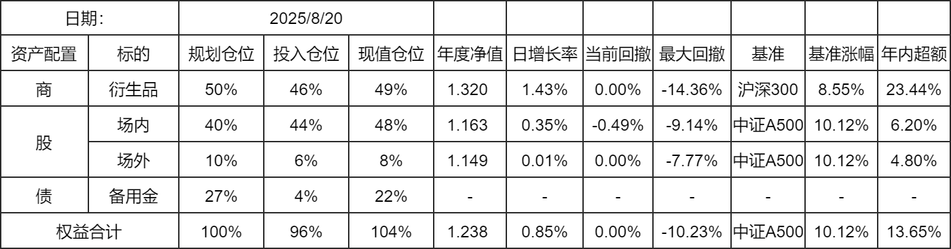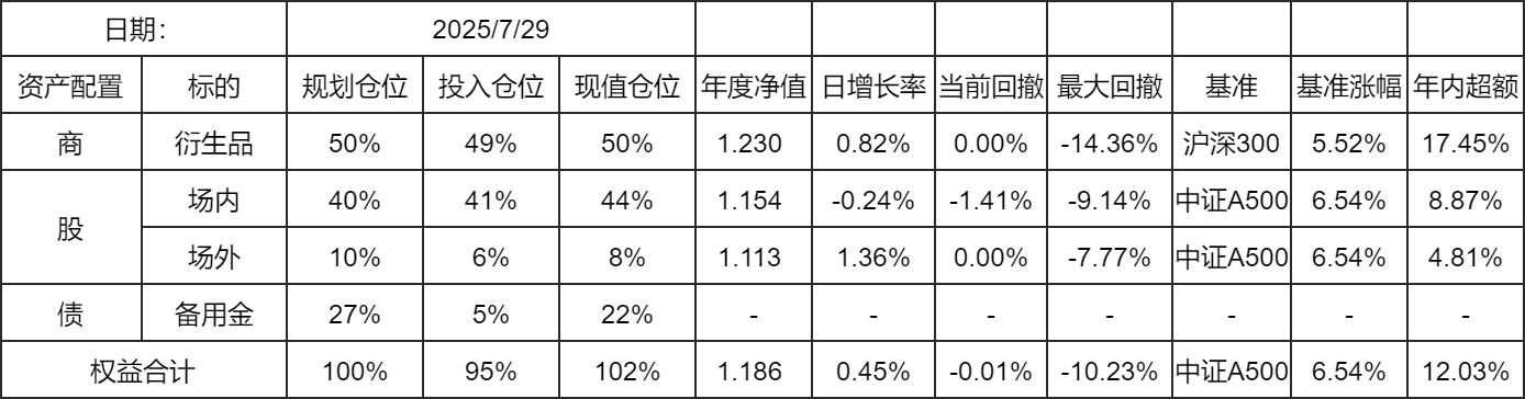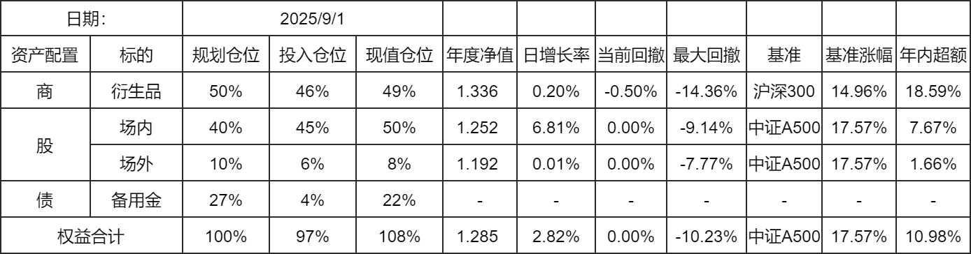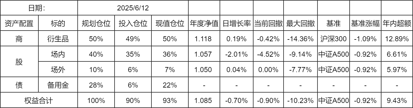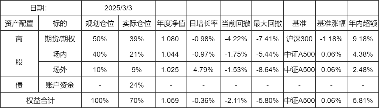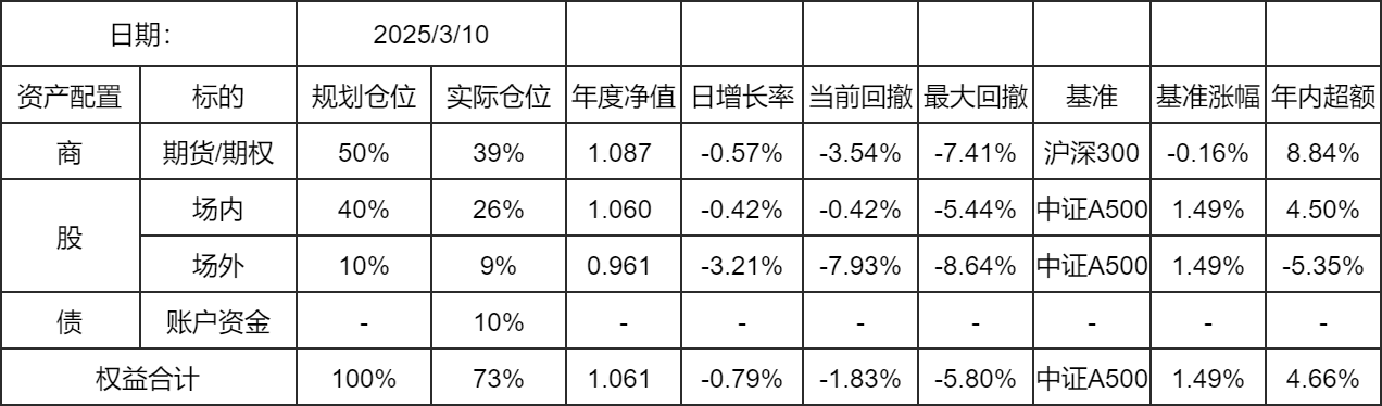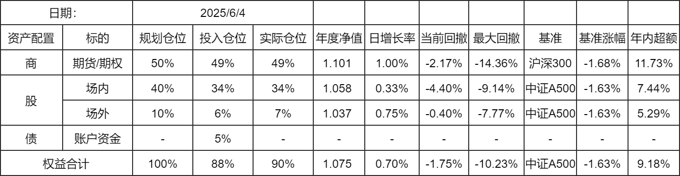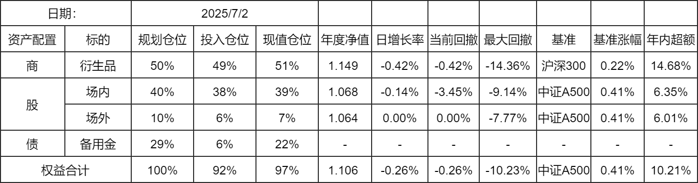 一周过去净值也创了新高,场内收益一般,衍生品还行,场内主要是香港市场,衍生品主要是大A,双轮驱动,就当做是此起彼伏吧,还不错