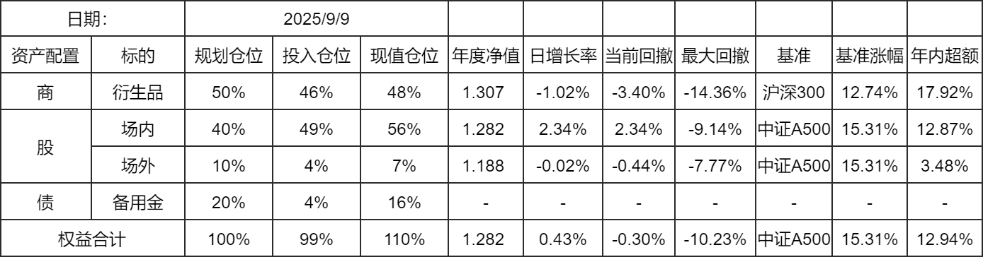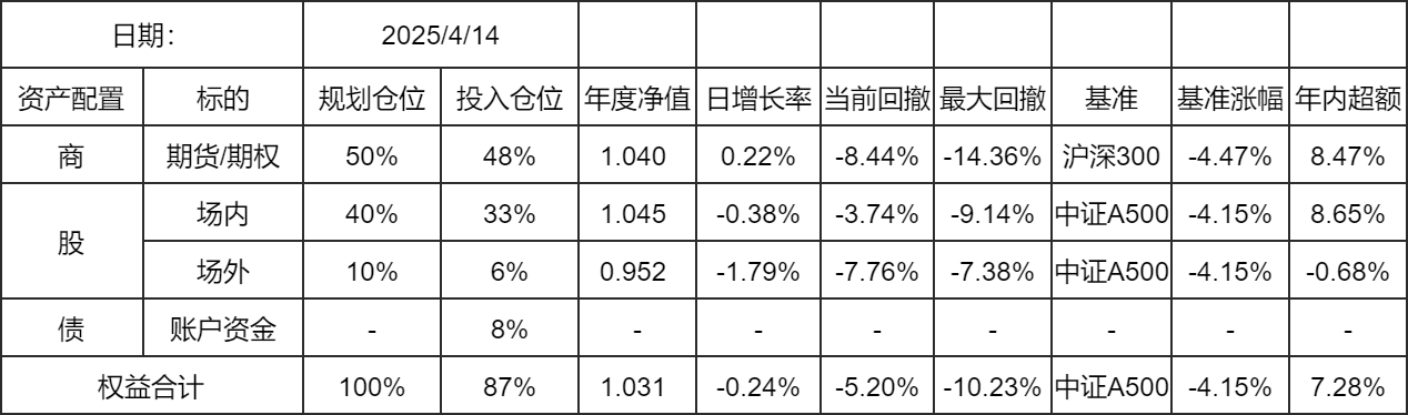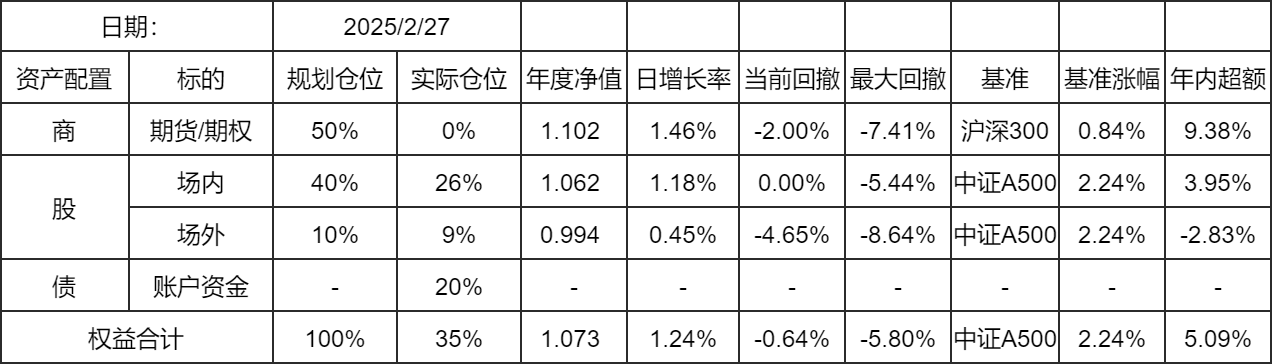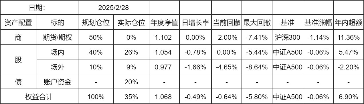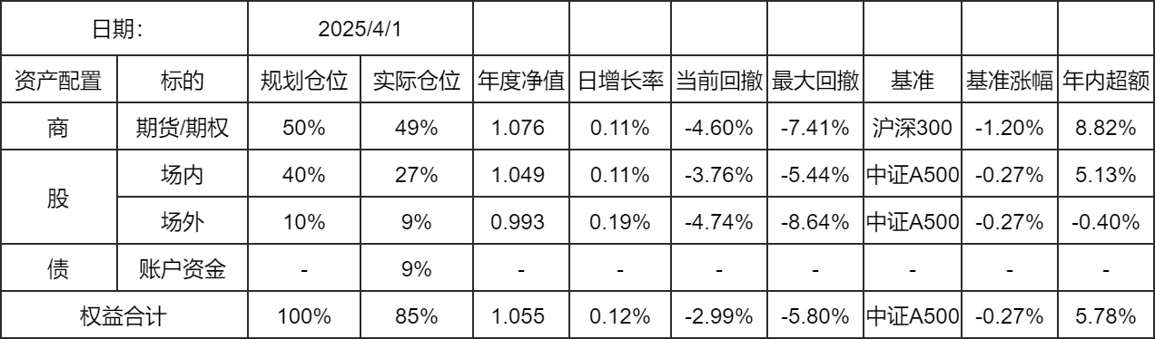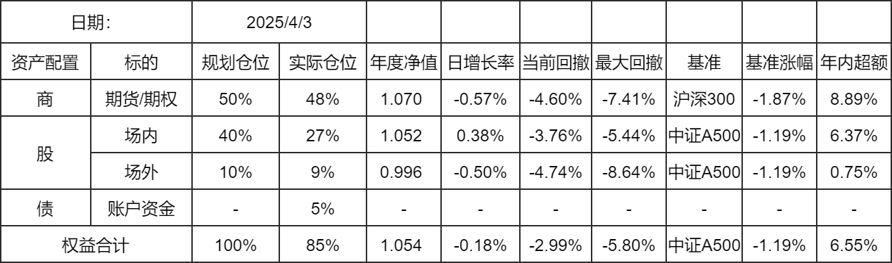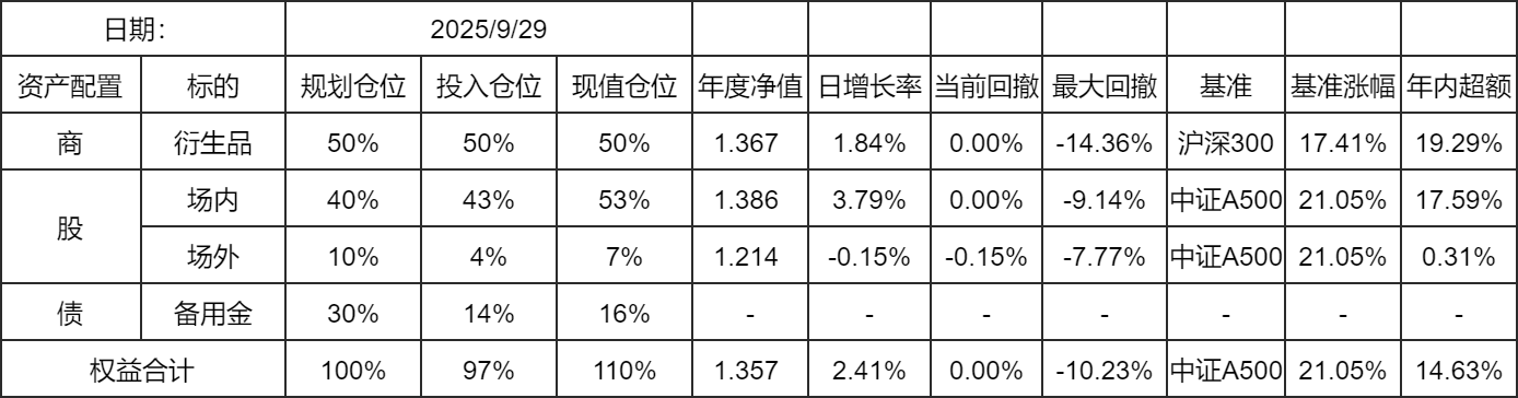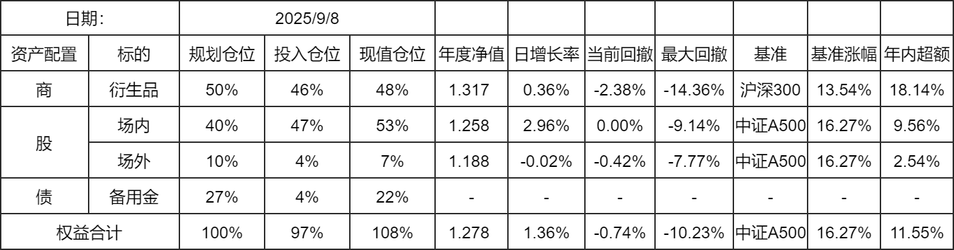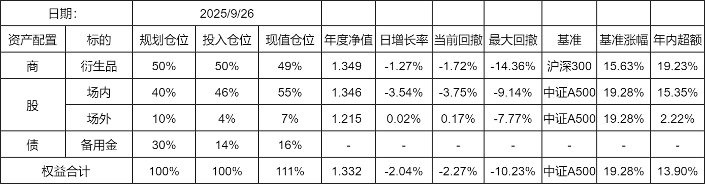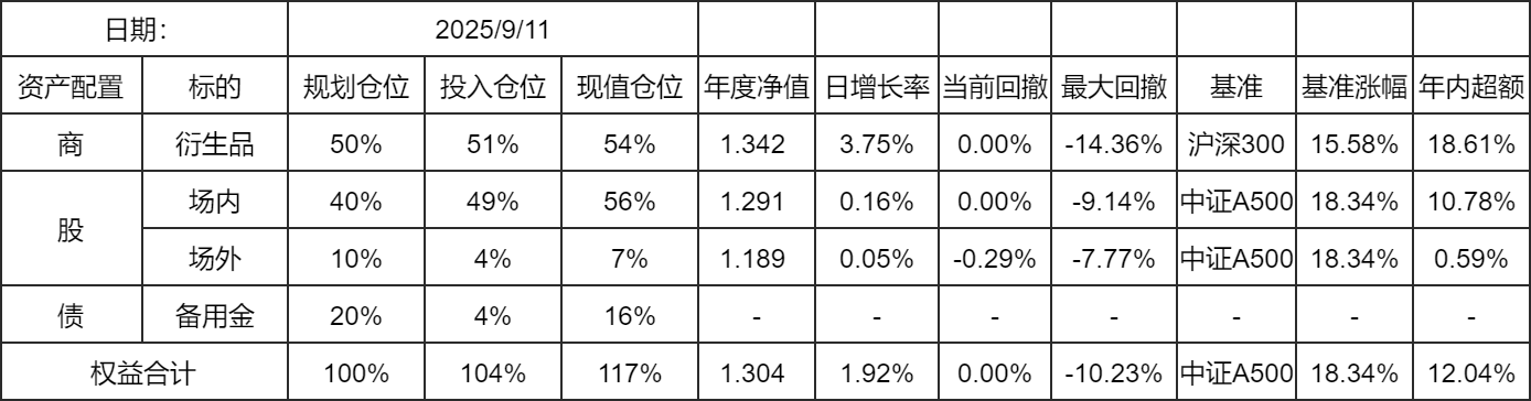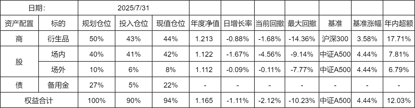 一周过去净值也创了新高,场内收益一般,衍生品还行,场内主要是香港市场,衍生品主要是大A,双轮驱动,就当做是此起彼伏吧,还不错