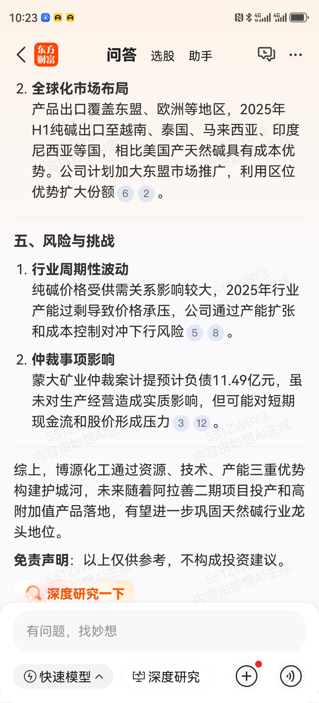 上面是转帖大佬的分析,说说我自己的情况,我个人持有一点博源化工,非常少,仓位1.38%。2024年开始买入,第1笔买入5.72元,2025年6月份最后一笔买入,价格4.88元。成本摊薄为5.25元,目前盈利22%。