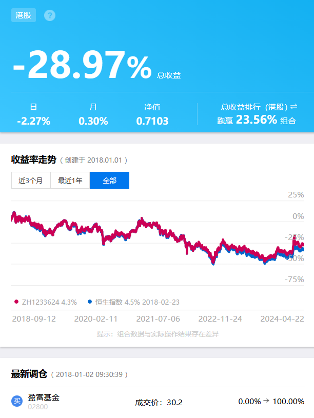 3b) 盈富基金(我将其作为恒生指数的替代),其中24年上涨23%。