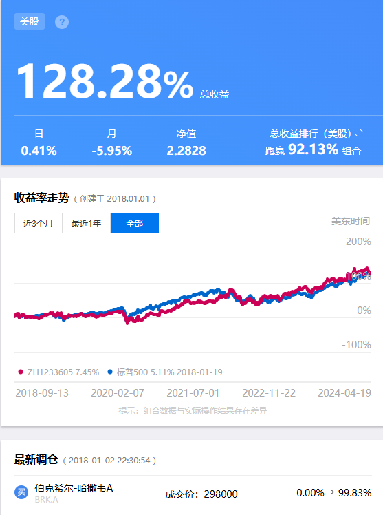 相比较而言,股神巴菲特的伯克希尔-哈撒韦的回报与其基本持平。