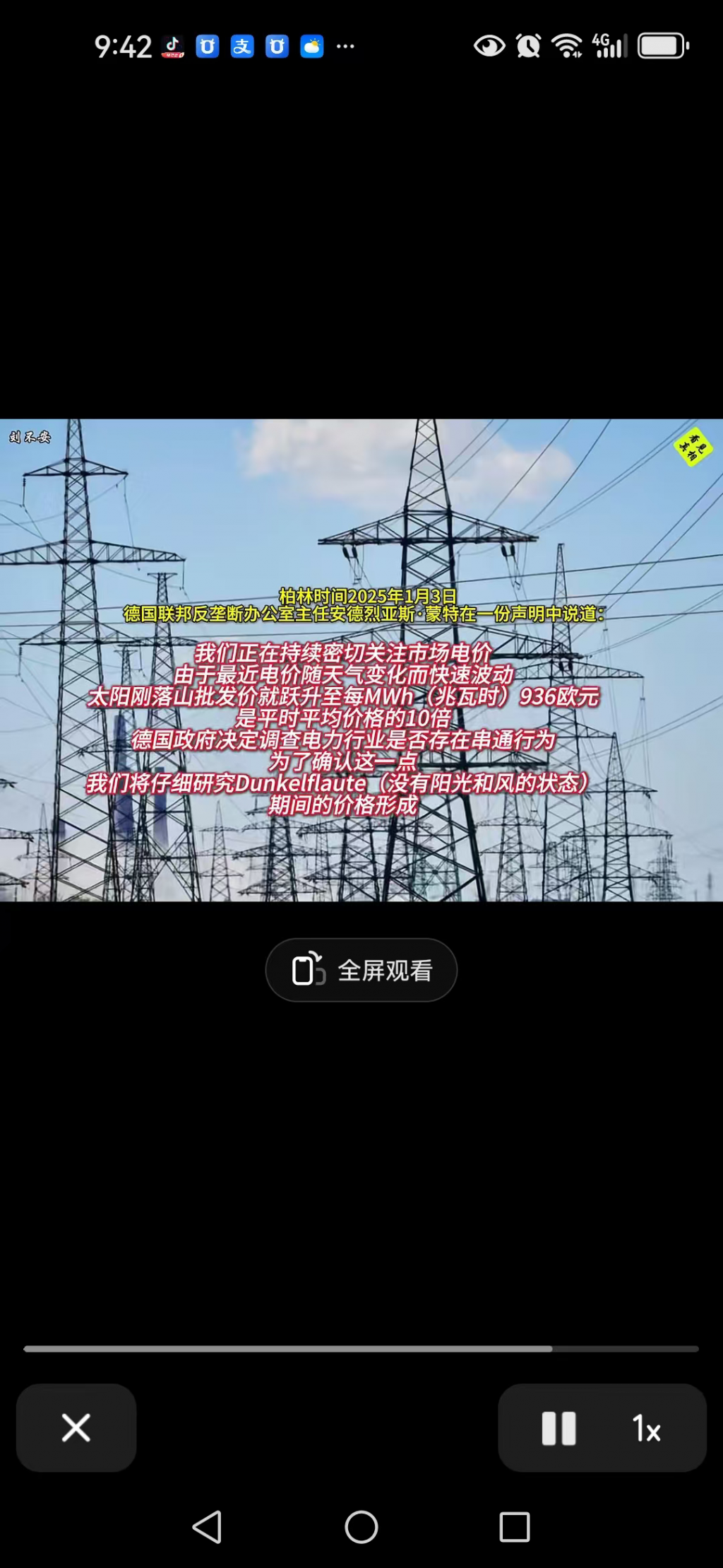 不过,值得关注的是,就在上个月,即2024年12月份,欧洲电价一度出现飙升,德国平均电价更是刷新近两年新高。有分析认为,未来,可再生能源发电是大趋势,欧洲电力价格大幅波动,凸显了大型储能电站的重要性。