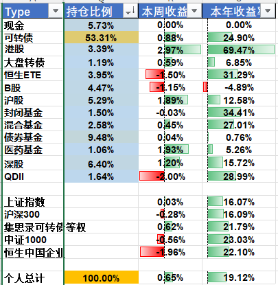 一年来不断加仓转债,超过50%的仓位,绝对收益还是转债为主。