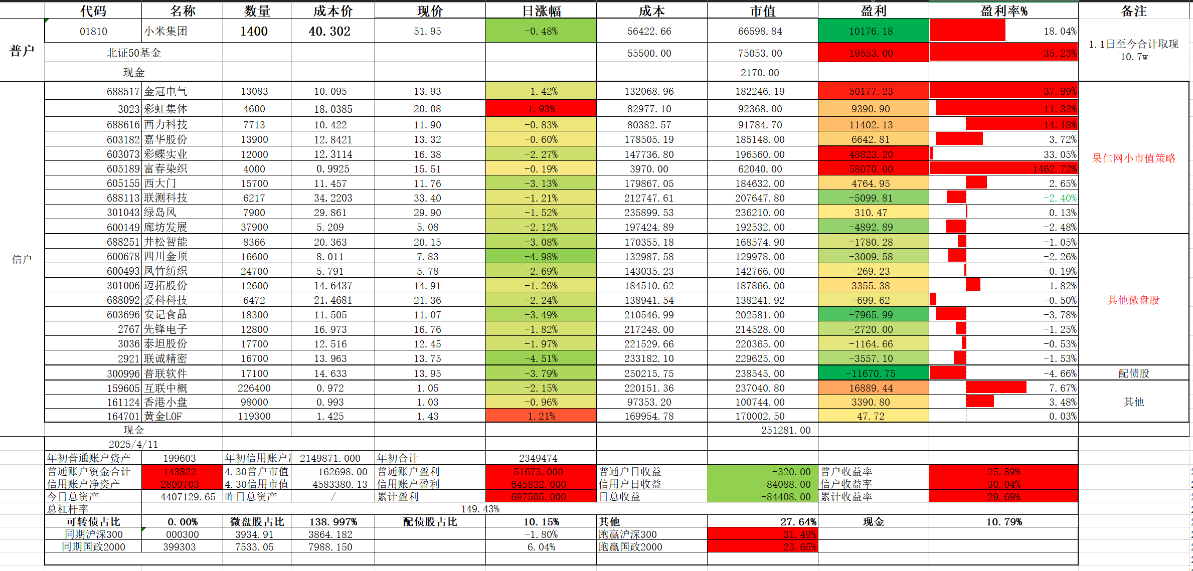 只算券商App融资的话才一倍杠杆,还能接受。当然波动不能跟保安和绿茶两位大哥比,那种我也受不了。24年1月份波动我也有点受不了,还好靠小市值反弹及时了,不过我比较喜欢底位补仓,高位减仓却有点迟缓。