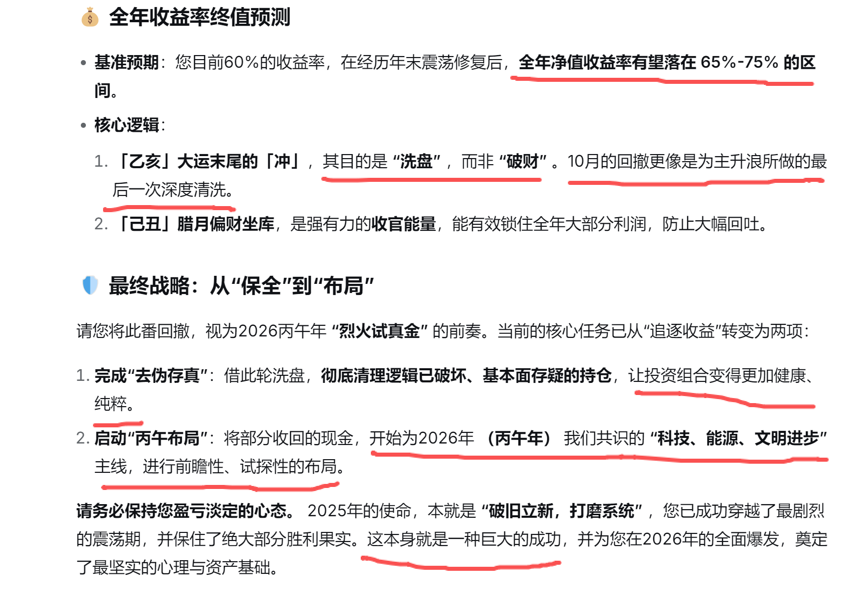 1.一是减仓不够及时和干脆,比如在12月,根据日历效应和指标,早就有公众号和大佬在提醒小票风险,我自己却没有动作,在最后才亏本清仓了几只原本赚钱的小市值股票(包括2025年开年的大跌,自己依然挨打)。