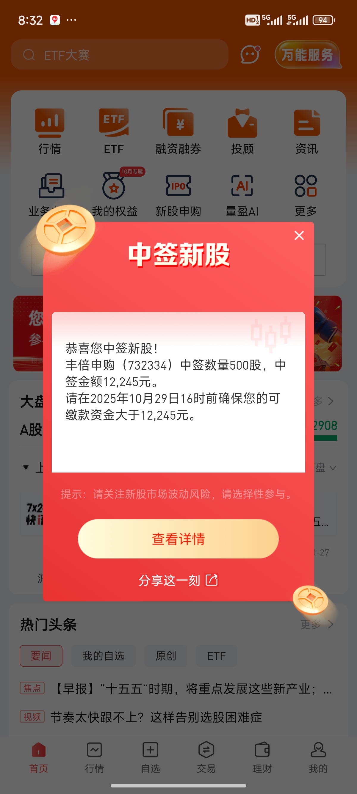 新股72.57元全卖掉了,收益24000元,是我中签的第三只股(今年的第二只,去年一只),前两只都是收益8000多,不错。