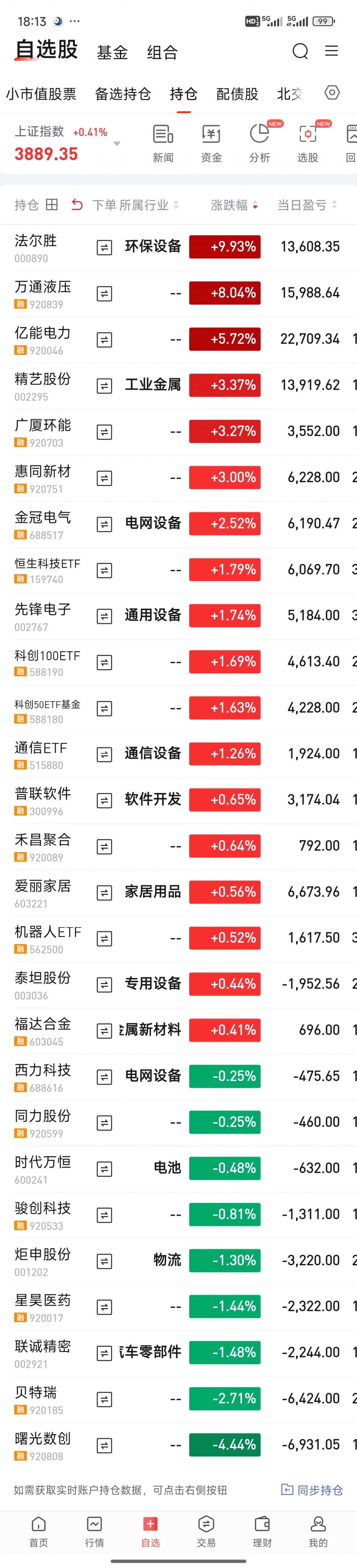 北交所周四周五有小作文影响,好起来了,手里好多只北交都翻红(有个股两天涨了十来个点),今天也稍微减了点涨得好的。本周还抓到法尔胜,3个涨停,但仓位太少了。