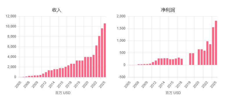 看到一堆还在给楼主带高帽的,来给楼主泼泼冷水:来自lululemon的案例下面是它的收入和净利润表: lulu和ppmt有很多相似之处:都是高增长消费股,有和labubu对应的瑜伽裤这个爆款,都是全球扩张,都是涨了N倍...下面是它的年度股价图: 最近两年的大跌在业绩增长的情况下非常扎眼,目前PE是11让我想起了业绩不错的兴齐眼药