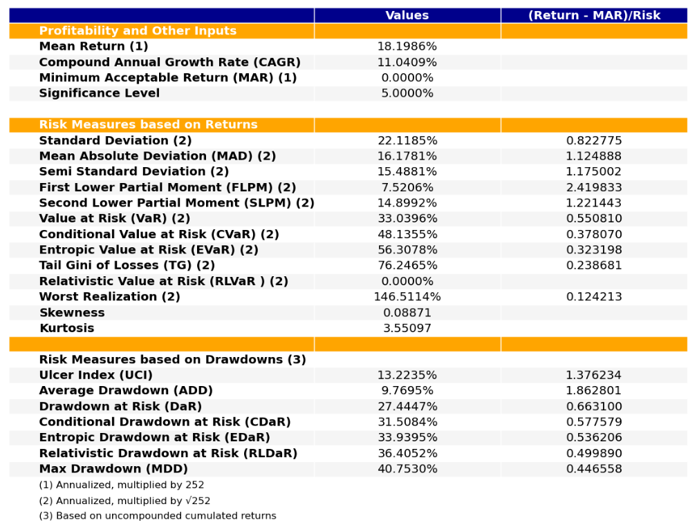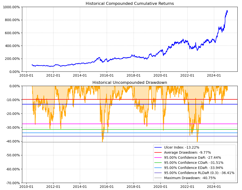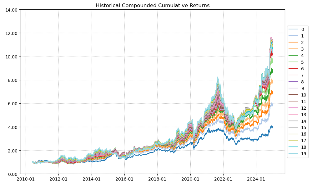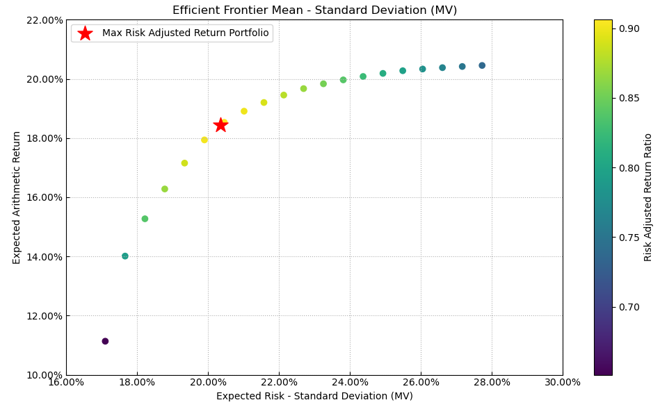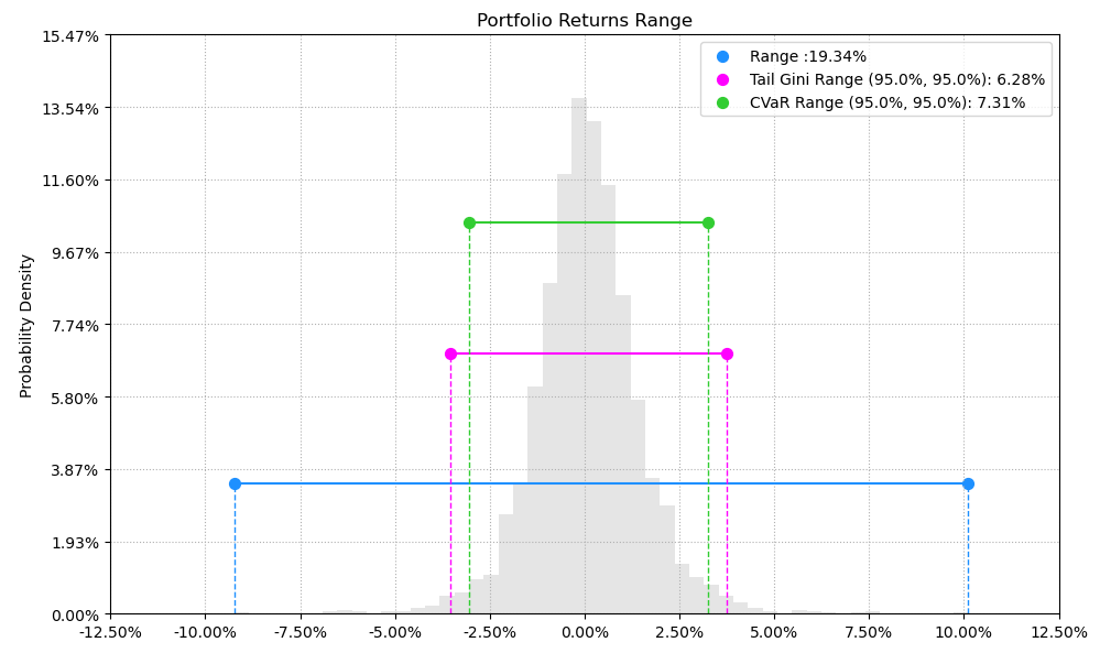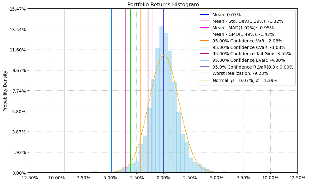 最后看下整个投资组合的情况,日度均值回报在0.07%,比上次测的航空国防行业低20%,而且7.31%的CVaR波动也不低。