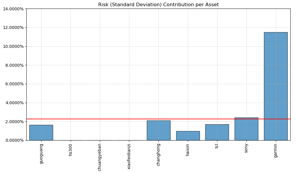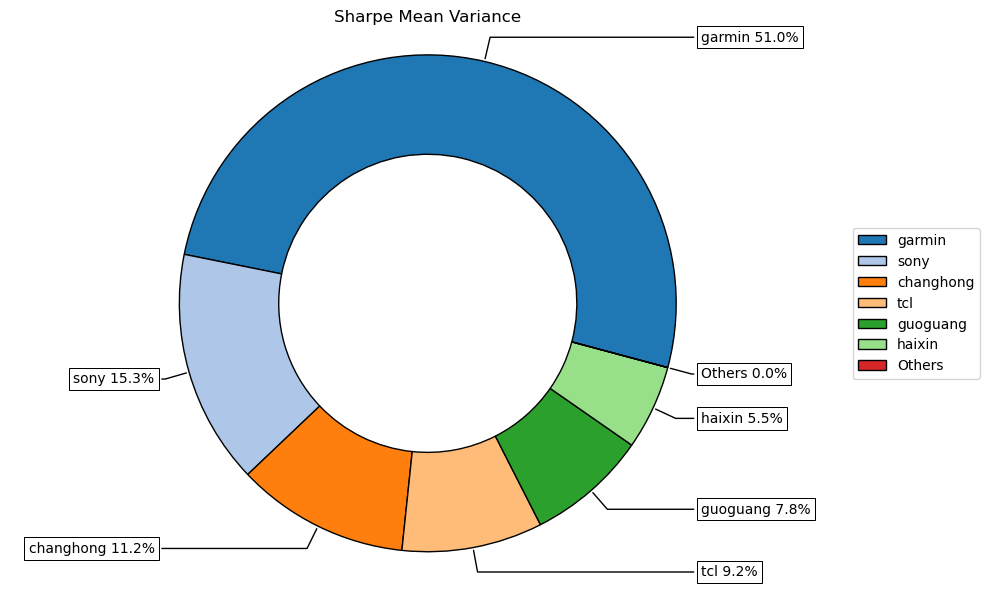 按最高夏普比率配置的话,系统给的权重为7.8%,最大权重给了美股的佳明占比51.0%。