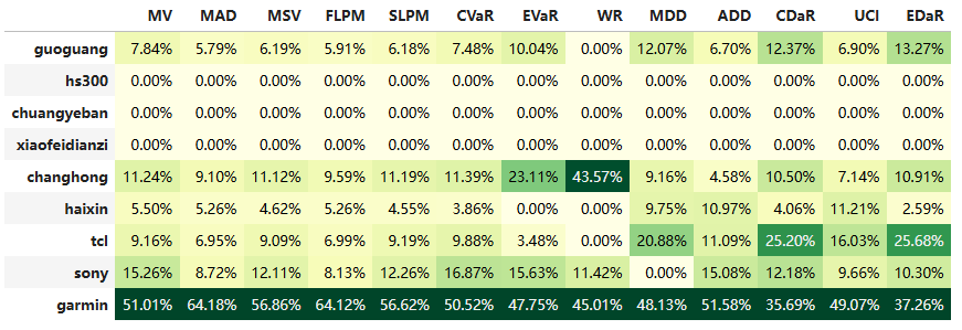 如果换成其他约束,系统给的配置比例也大同小异,基本是在佳明和四川长虹之间做取舍了。