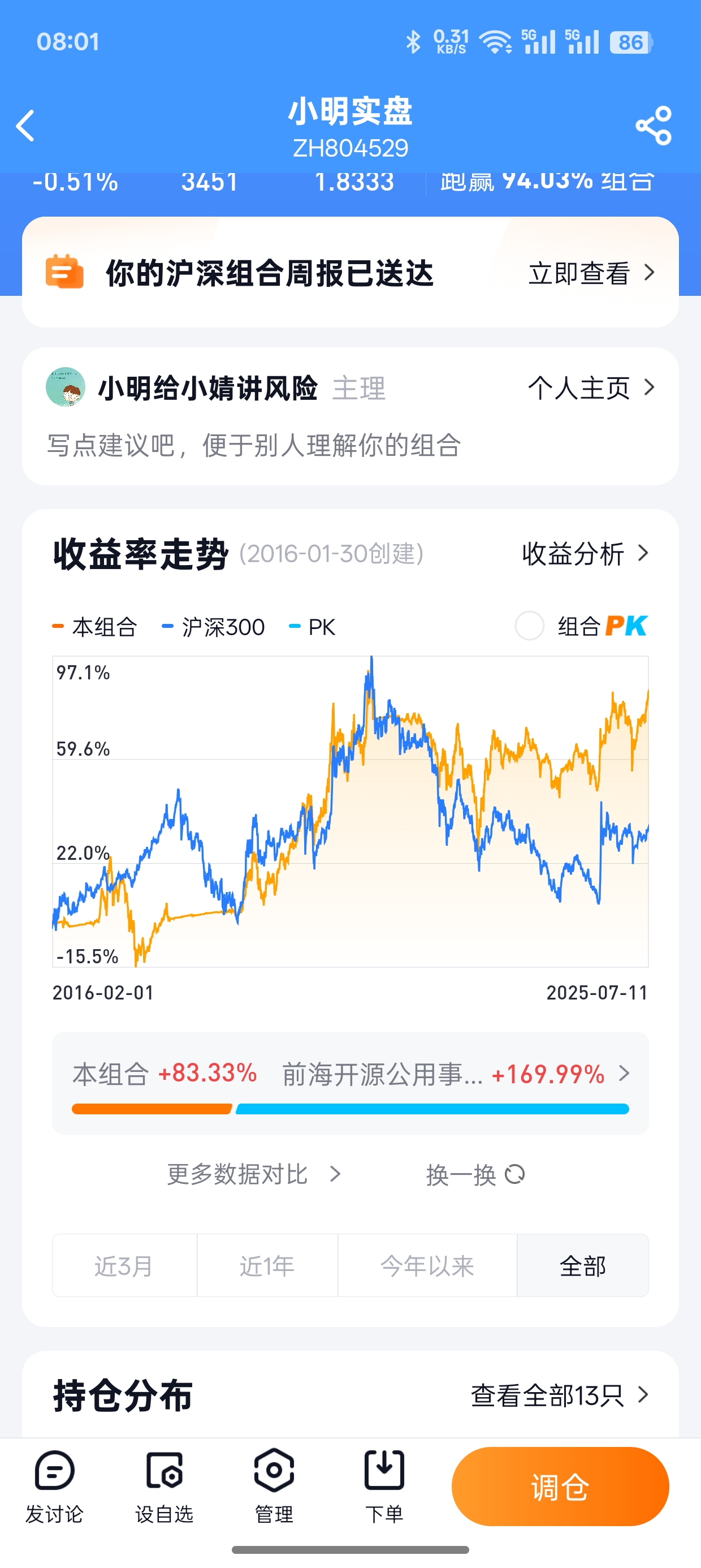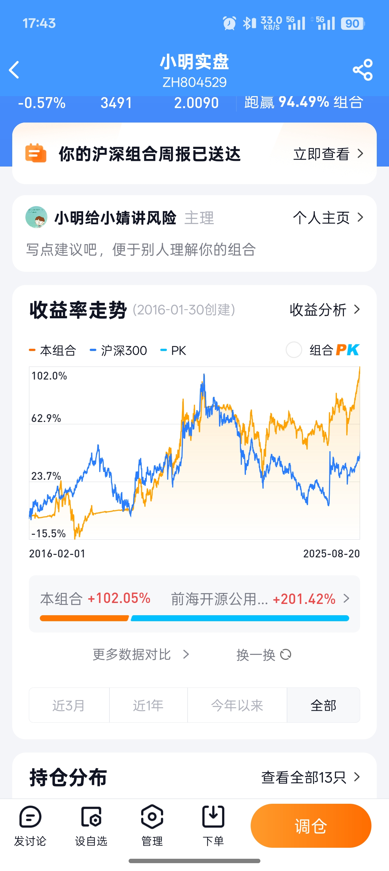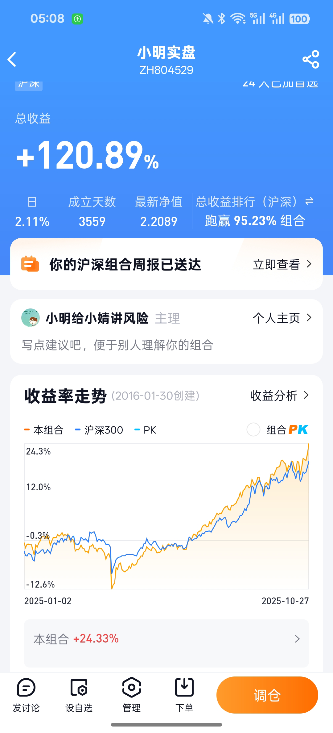 全资产收益率24.33%,在牛市里面不太突出,但是在配置党里面应该不错了