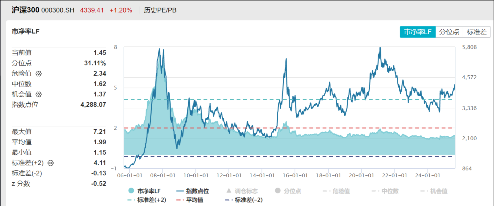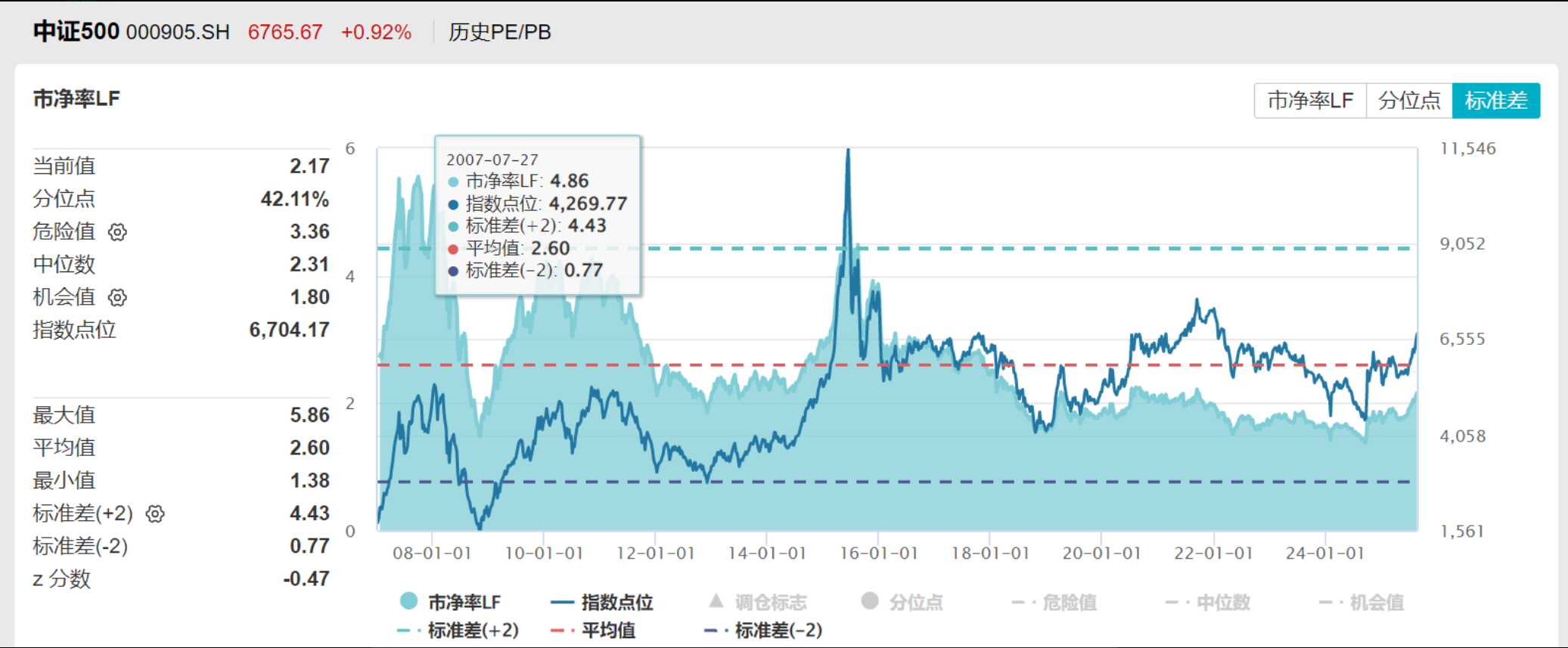 下⾯三个主要指数的市净率分布时间起⽌点均为20061231-20250822