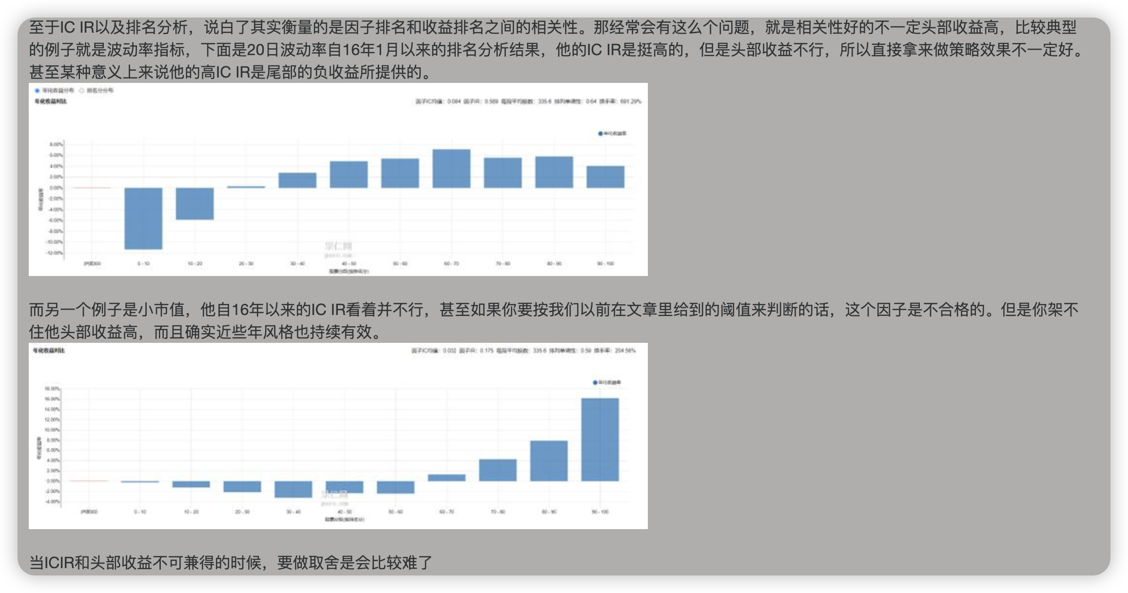 对于多因子策略,有一类构建小市值策略的做法是先筛选最小市值400只后按财务、量价指标等因子打分,这时候构建策略的核心变成了“在最小市值的样本空间中什么因子的分层效果最好?”我发现这类方式的分箱结果往往不好。