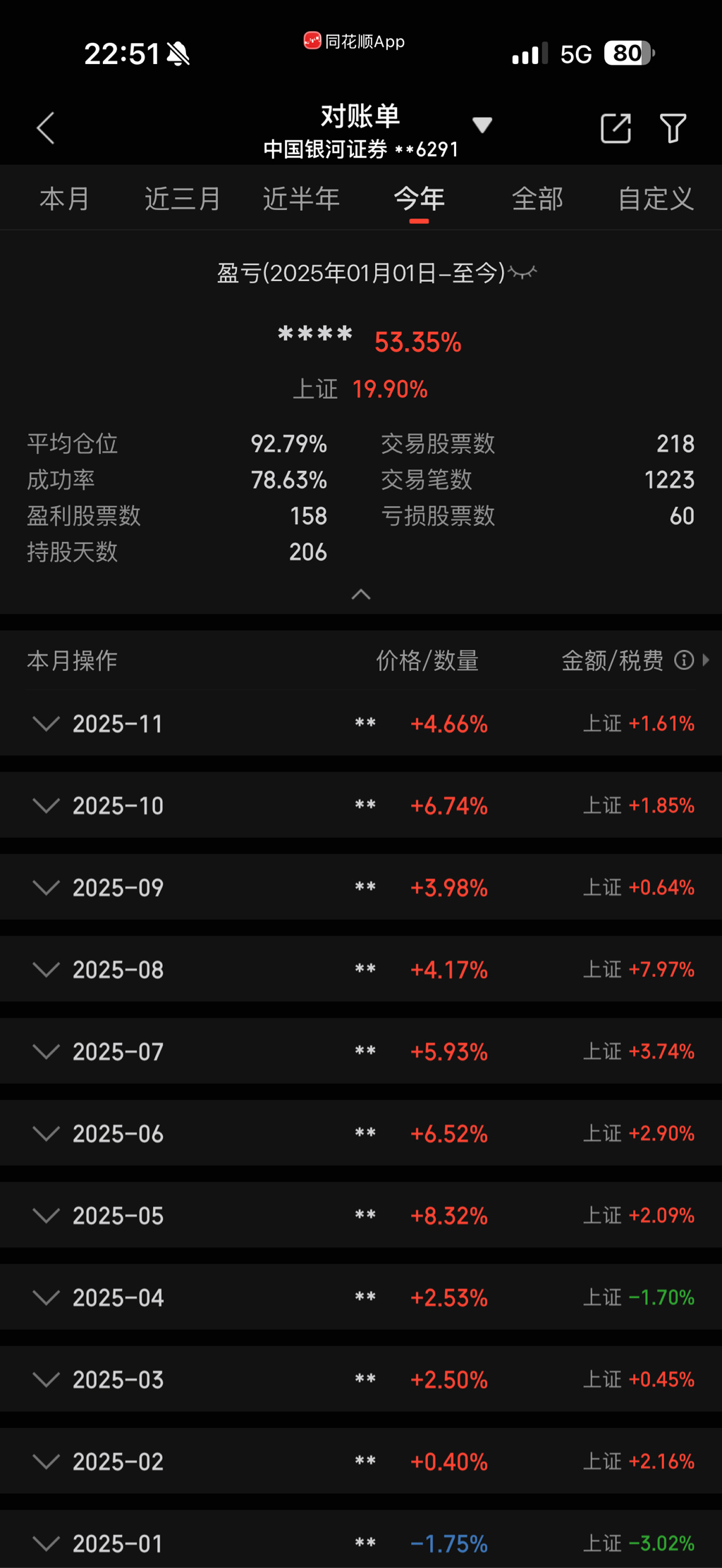 持仓五连红,新高!