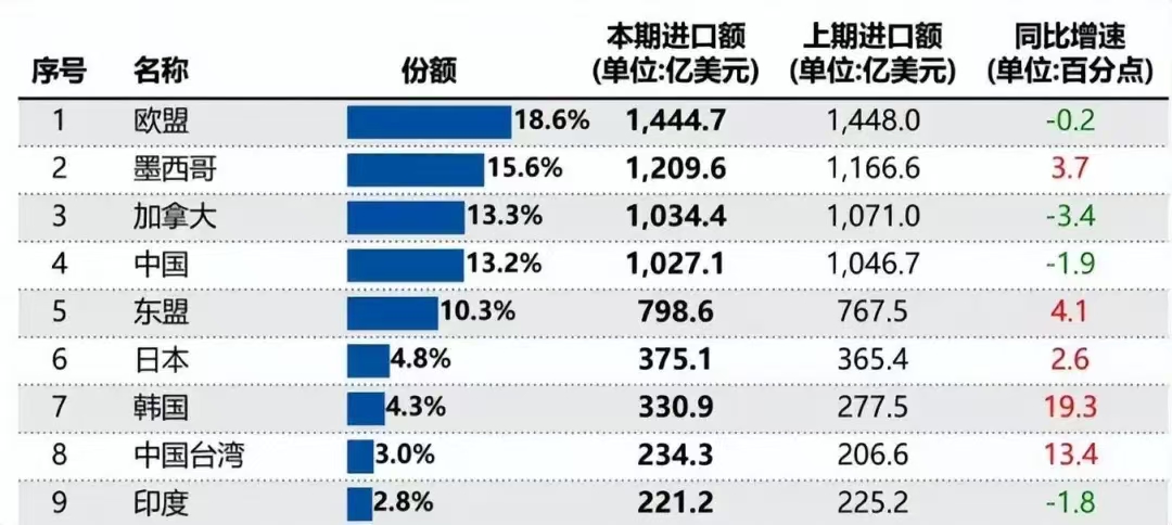 下图是2024年第一季度美国进口国排名。