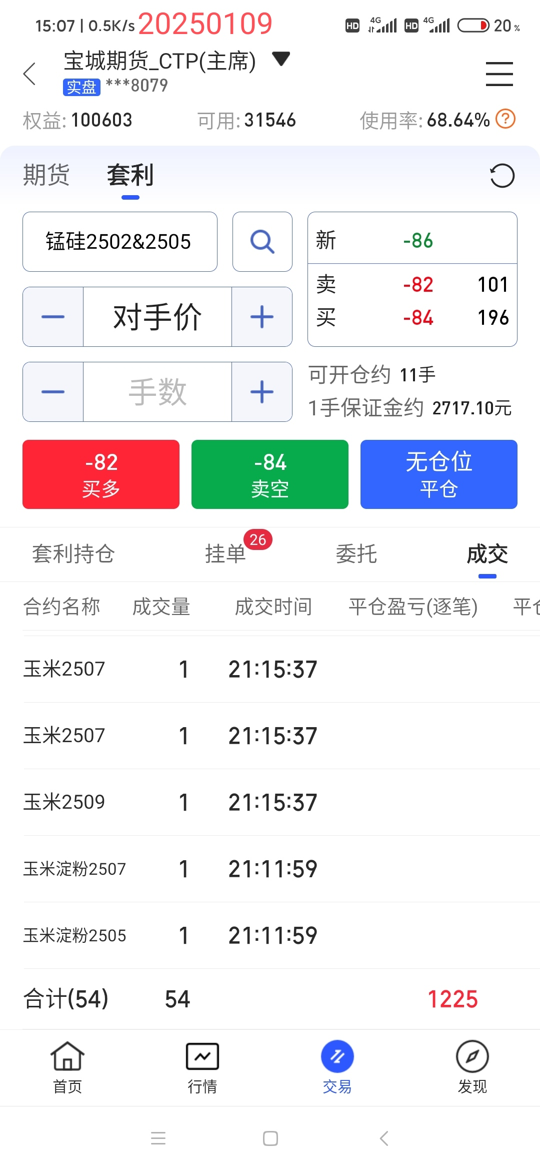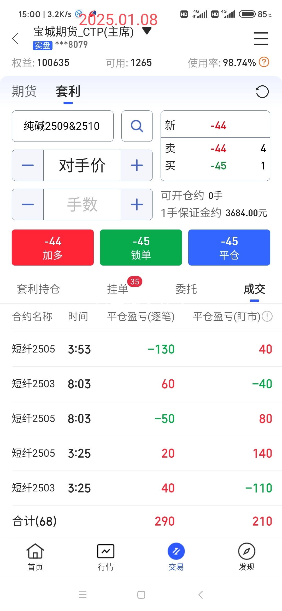 2025年开始测试商品期货跨期套利交易,记录盈亏情况