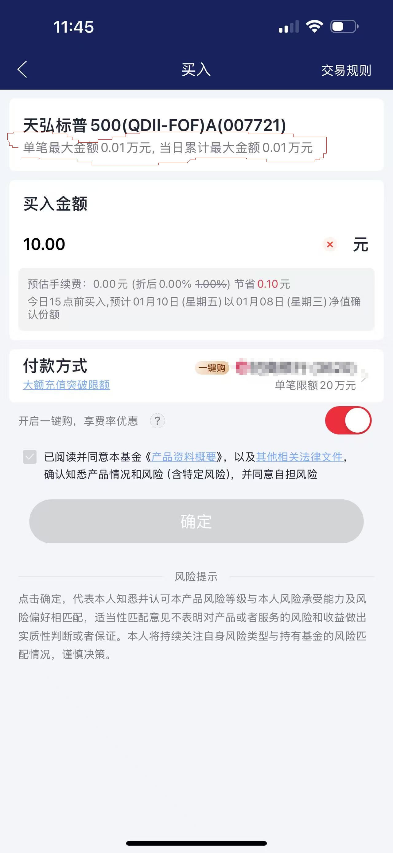然后看标普500申购限额,我的老花眼怎么也看不清