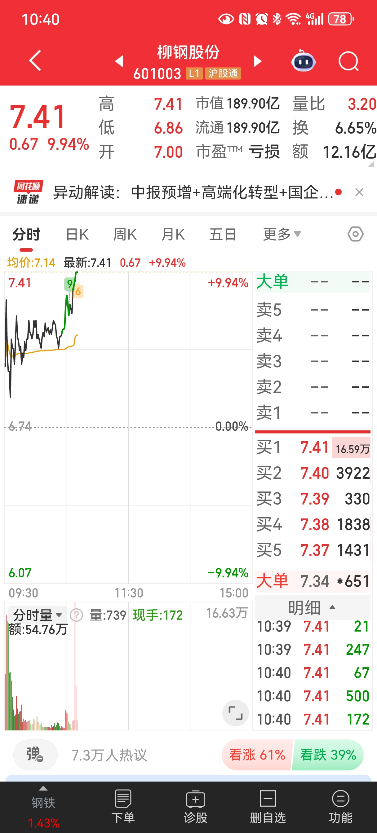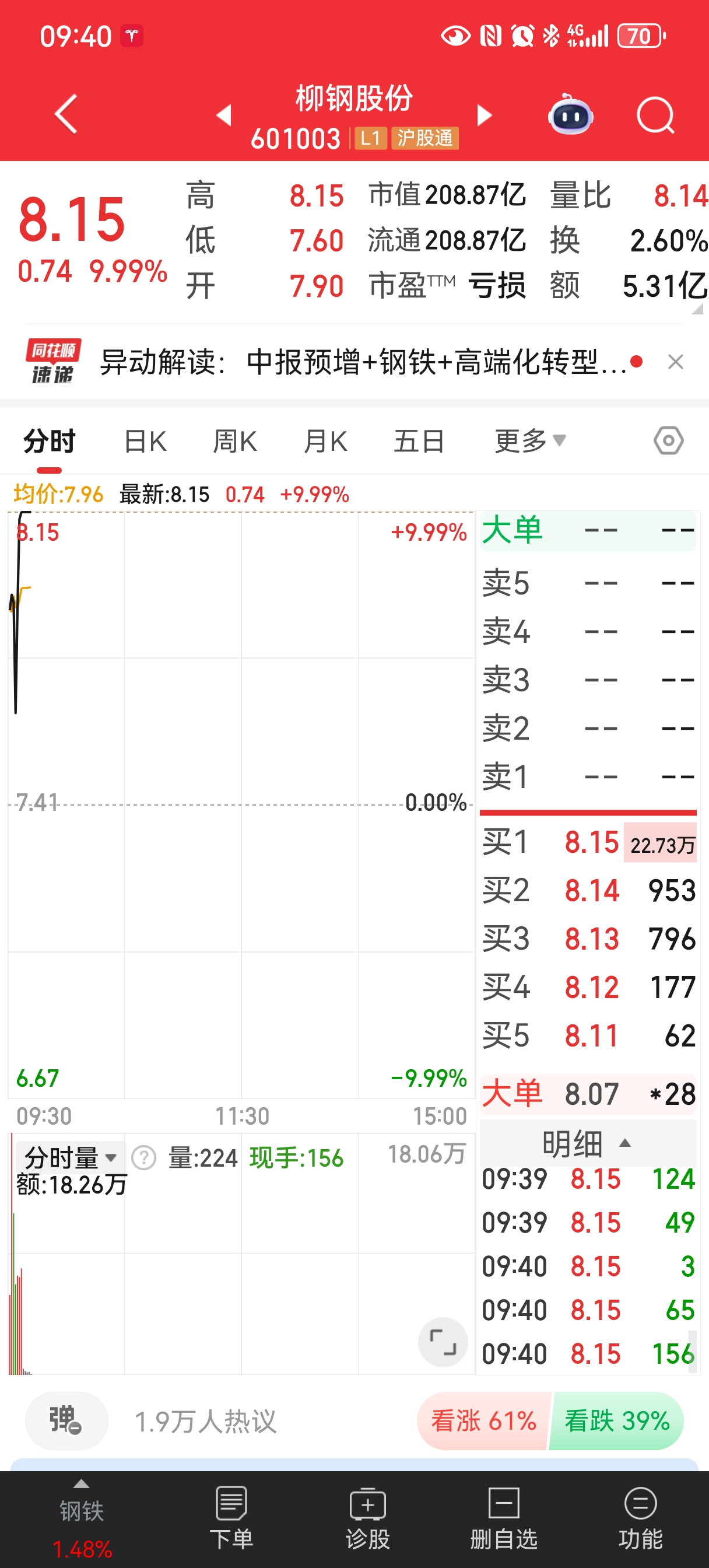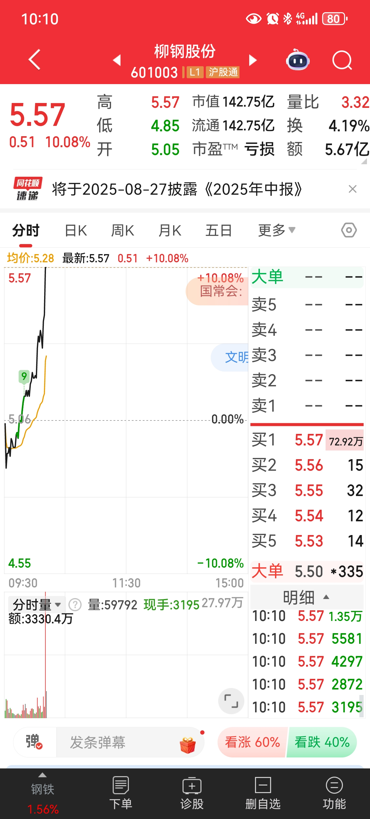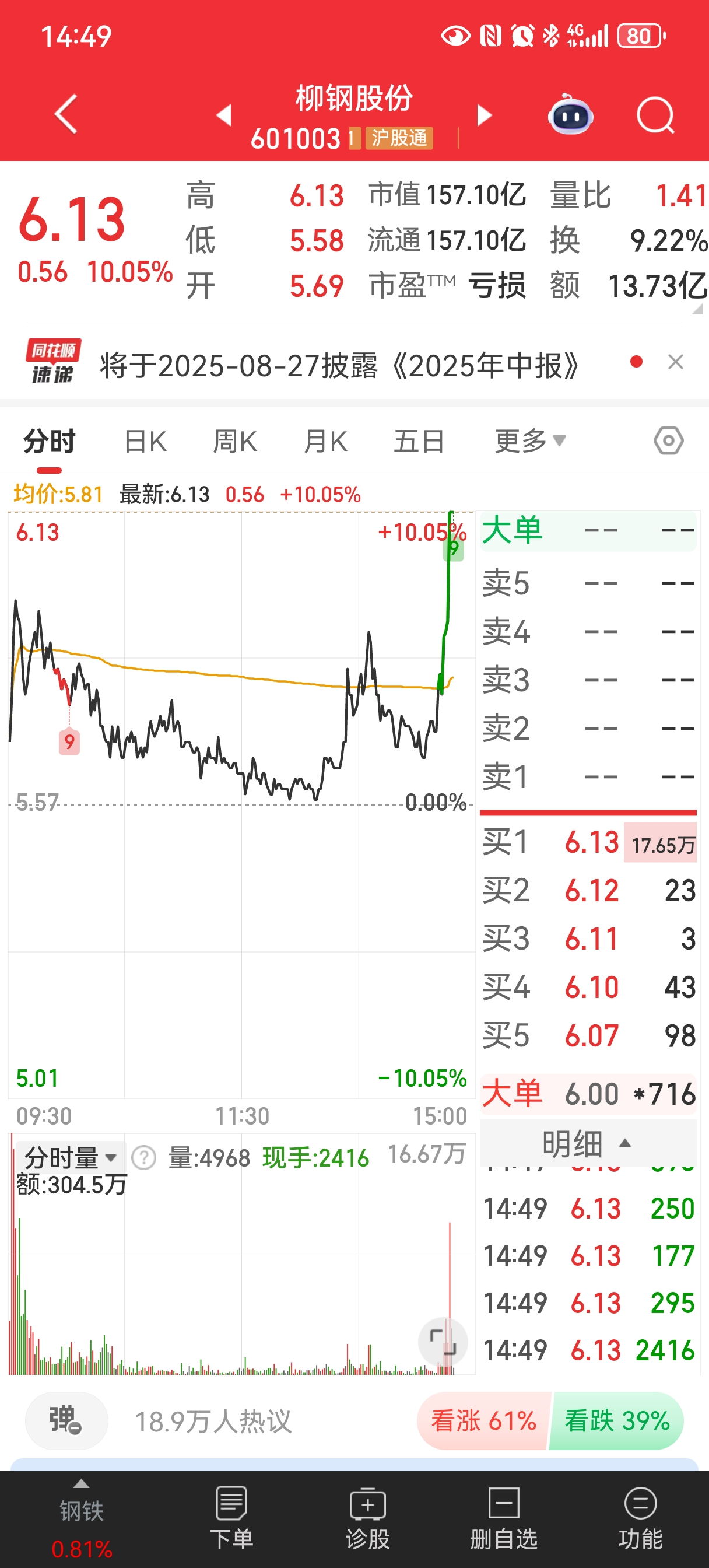 2025年第40个涨停板,柳钢股份涨停板截图留影纪念!