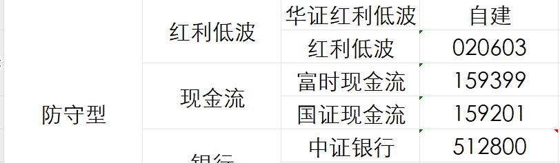 防守型ETF:恒生红利低波40%、红利低波、中证现金流、银行各20%。
