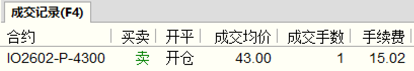上午在300在4600点附近,开了3手IO2601-P-4300,40。