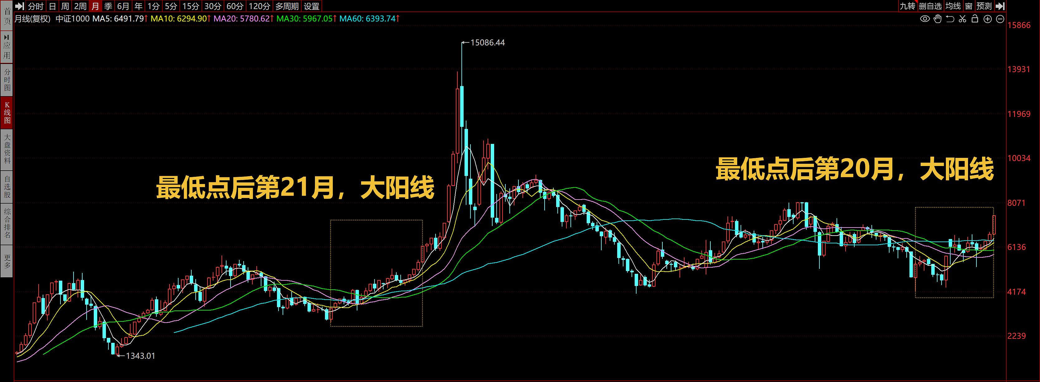 14年9月,是12年12月最低点后第21个月,拉出10%+的大阳线。